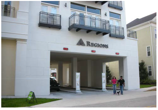 Drive through lanes and windows shall be designed so that they integrated into a building (see Figure V-1); or
