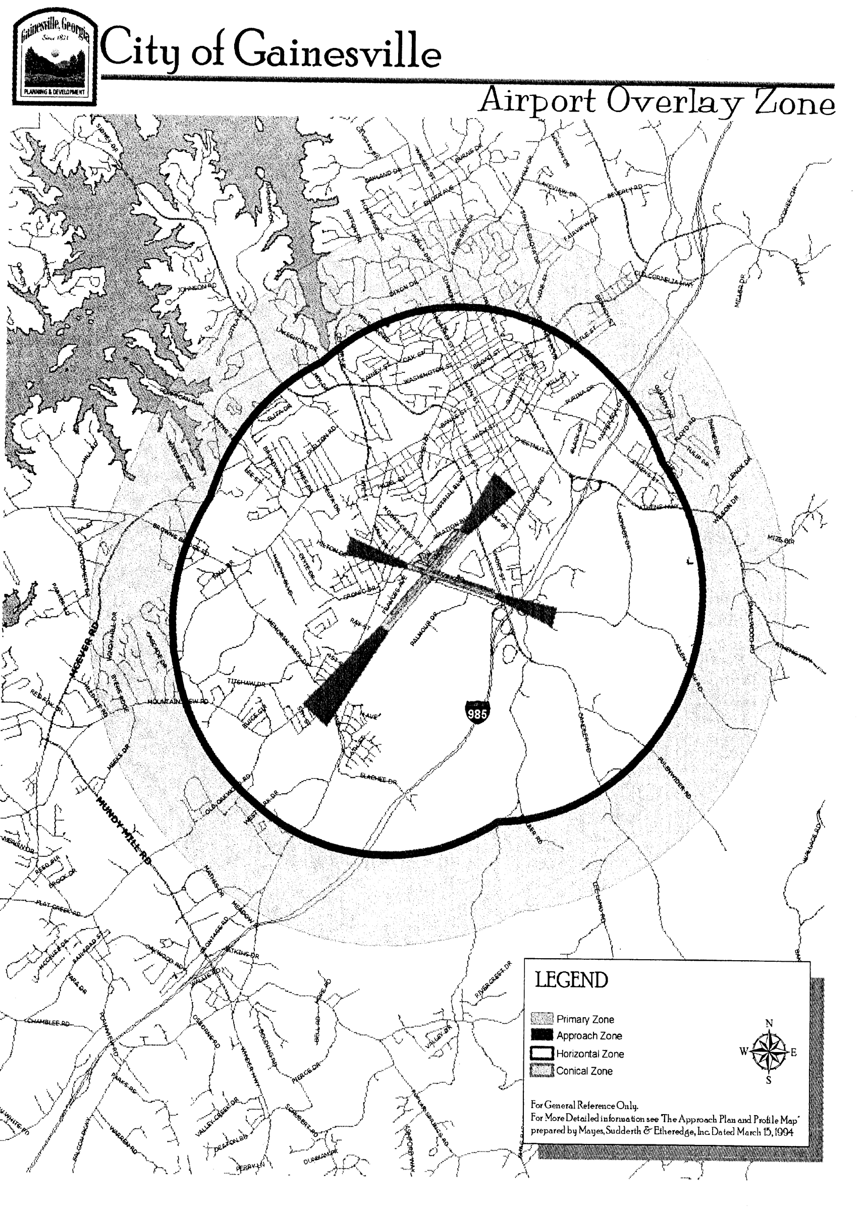 The various airport zones established by this chapter are illustrated on the approach plan and profile map of Lee Gilmer Memorial Airport, prepared by Mayes, Sudderth & Etheredge, Inc., and dated March 15, 1994, which is hereby adopted and made a part of this chapter.