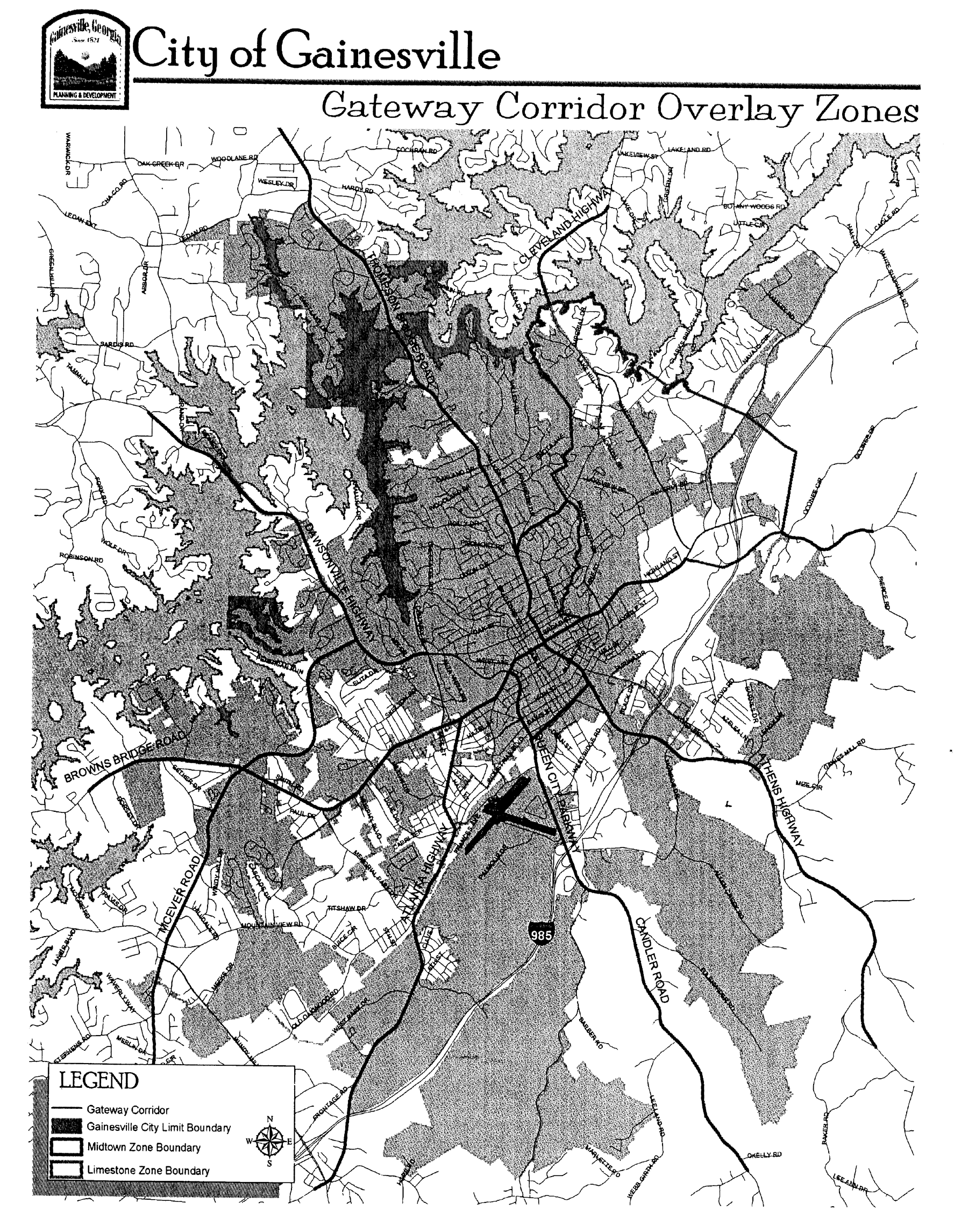 The boundaries of the Gateway Corridor Overlay Zone include all those major roadways entering the city, with the exception of those corridors that are fully included within the Limestone and Midtown Overlay Zones. The Gateway Corridor Overlay Zone shall include all properties fronting on a gateway corridor designated on the overlay zone map.