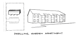 | Dwelling, multifamily, including apartments, condominiums, and cooperatives | ![]() | Dwelling, multifamily, including apartments, condominiums, and cooperatives: A building other than a duplex, designed for or occupied exclusively by three or more families with separate household facilities for each family. The term "dwelling, multiple-family, including apartments, condominiums, and cooperatives," includes attached residential condominiums, row houses (not fee-simple ownership) and apartments. |