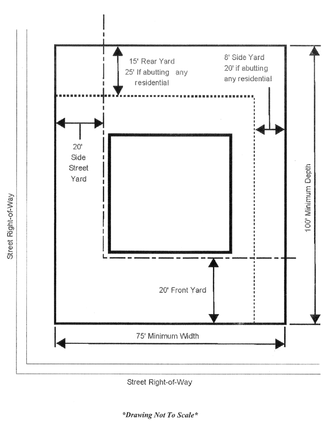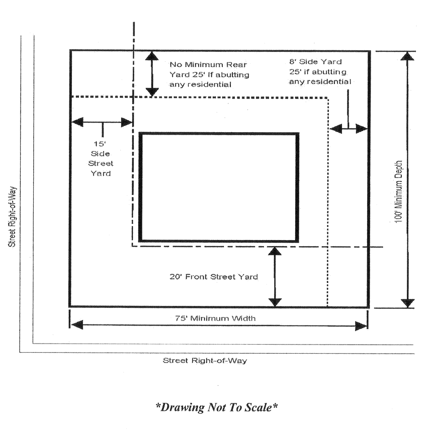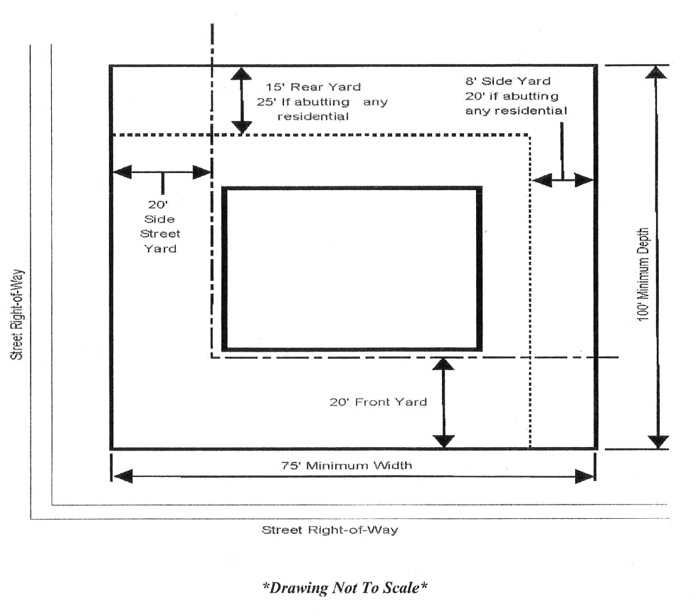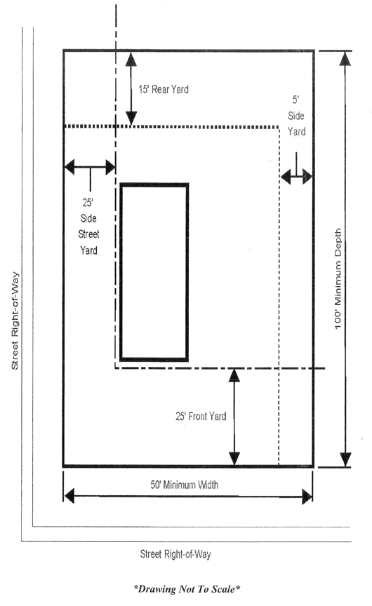 The minimum setback of a remaining street yard shall be a minimum of twenty-five (25) feet from the other property line, excluding the connecting element such as fences, walls and trellises.