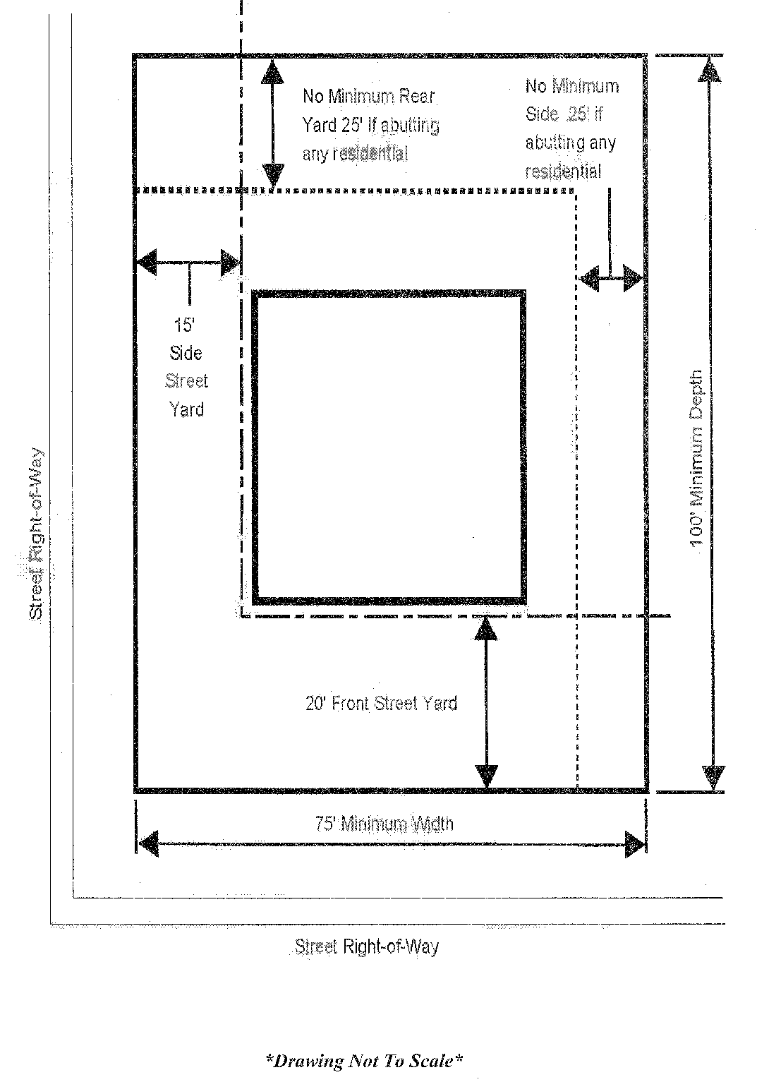Buildings on the exterior of the site and within twenty-five (25) feet of all property lines.