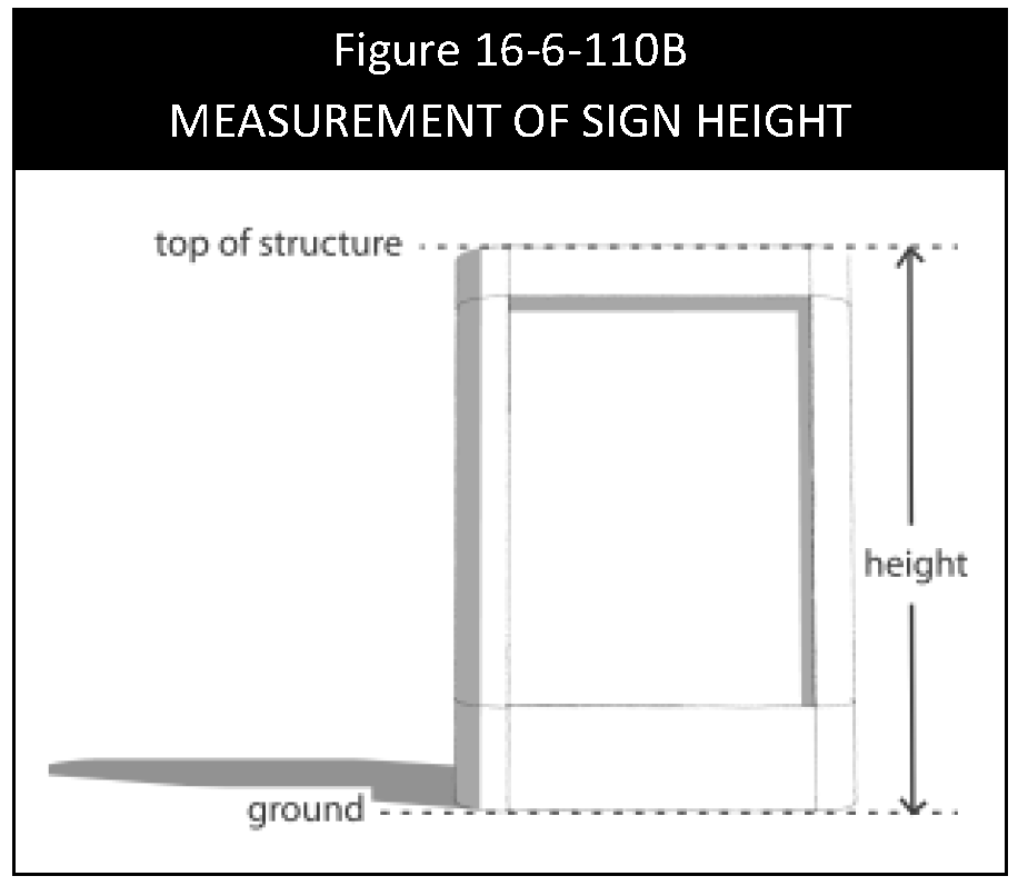 Sign height. For detached signs (temporary and permanent), sign height is the vertical distance to the top of the sign face or sign structure, whichever is higher, measured from the elevation of the average grade around the base of the sign. See Figure 16-6-110B, Measurement of Sign Height.