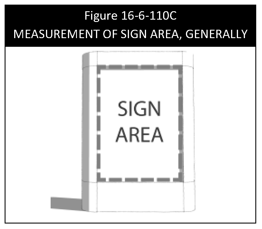 Inclusions and exclusions. The sign area does not include the structure upon which the sign is placed (unless the structure is an integral part of the display or used to differentiate it), but does include any open space contained within the outer limits of the display face of a sign, or between any component, panel, strip or figure of any kind composing the display face, whether or not this open space is enclosed by a frame or border. See Figure 16-6-110C, Measurement of Sign Area, Generally.