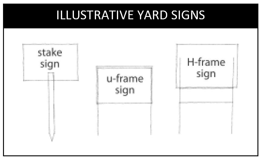 Yard sign means a type of temporary sign that is constructed of paper, vinyl, plastic, wood, metal or other comparable material, and that is mounted on a stake or a frame structure (often made from wire) that includes one or more stakes.