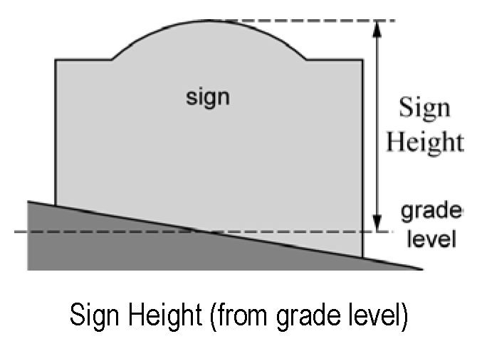 Sign height means the vertical distance measured from the adjacent street, grade level at the sign or upper surface of the nearest curb other than an elevated roadway, whichever permits the greatest height, to the highest point of said sign.