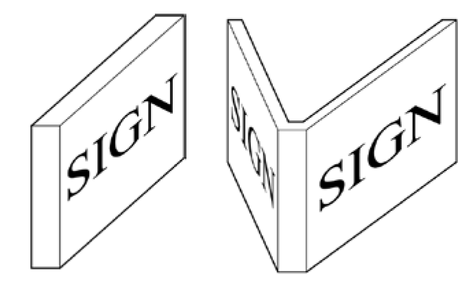 Double-faced sign means a sign constructed to display its message on the outer surfaces of two opposite planes. When only one face may be viewed from any vantage point along the street, the area of one side (the larger, if applicable) is counted toward allowable sign area. If both faces may be viewed from the same vantage point, the area of both sides is counted.