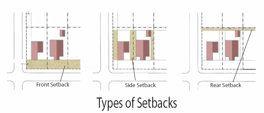 | On through lots, the required front and rear yard setbacks shall each equal or exceed the greater required front or rear yard setback, which would normally be applied in that zoning district. For example, if a through lot were located in a zoning district which normally required a 30-foot front setback and a 35-foot rear setback, both front and rear setbacks would each have to be a minimum of thirty-five (35) feet. Accessory structures may generally only be placed on through lots in the rear yard. The front yard shall be determined based on the architectural front of the proposed structure and other structures on the same block and side of the street. | |