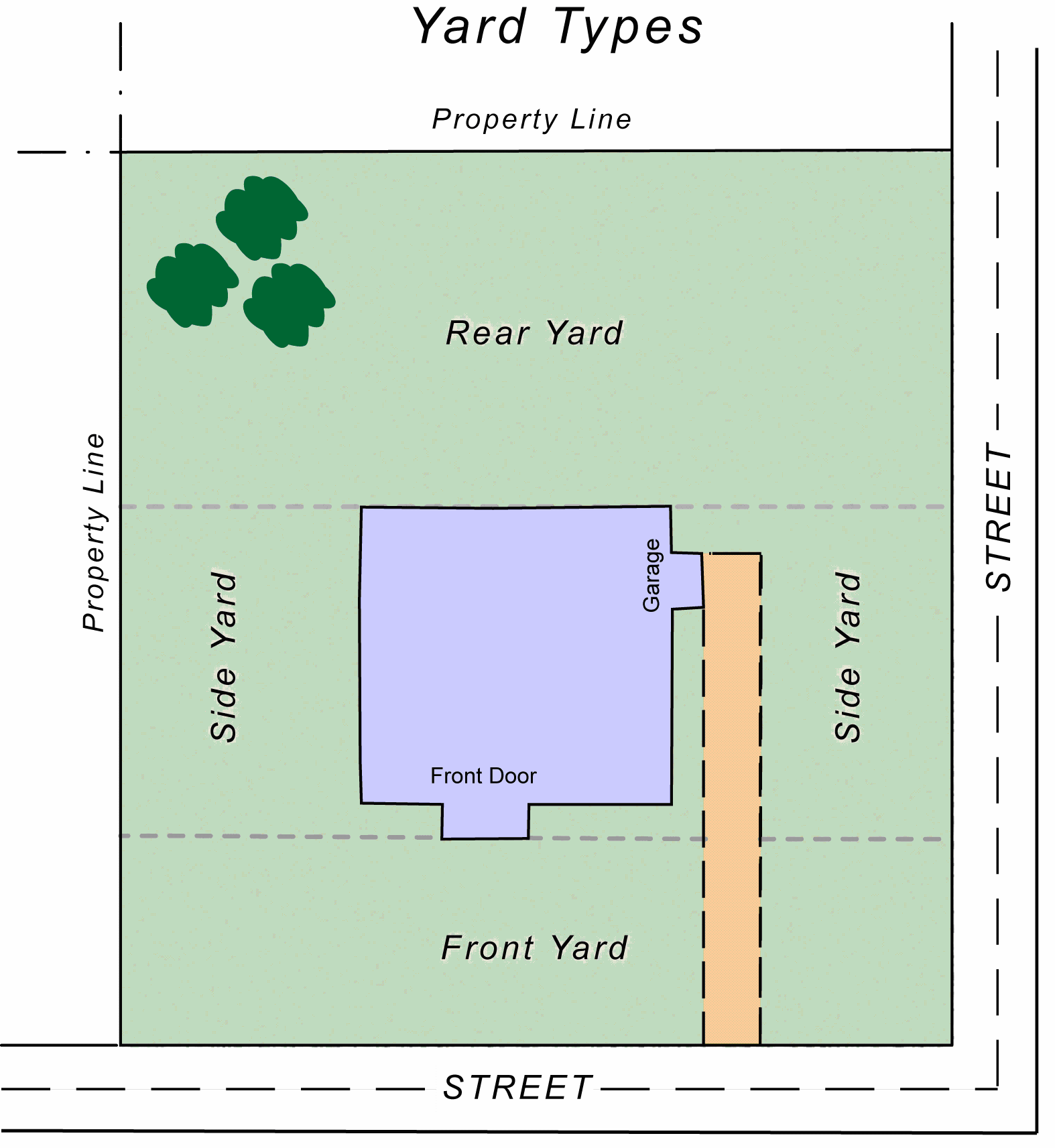 | Yard, Side | A space extending from the front yard to the rear yard between the principal building and the side lot line as measured perpendicular from the side lot line to the closest point of the principal building. |