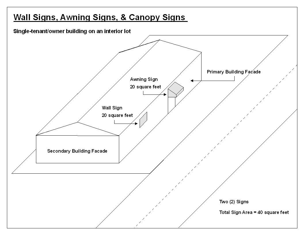 Achieves the goal of moderating the size and number of wall signs, reduces wall sign clutter, eliminates nonconforming signs, and precludes placement of wall signs over architectural features of the building.