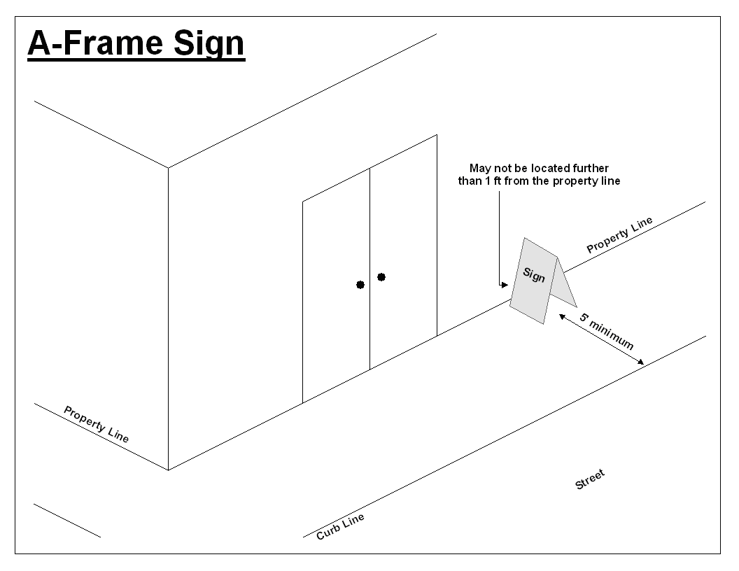 Signs shall be free standing, not attached to any utility pole or structure or any traffic control sign and be setback a minimum of five (5) feet from the curb or edge of pavement.