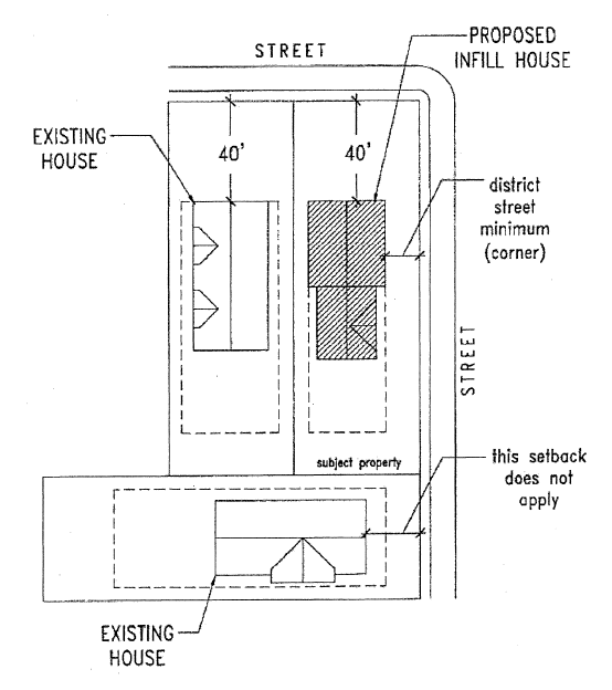 Front And Street Setback Applicability On A Corner Lot For A New House: