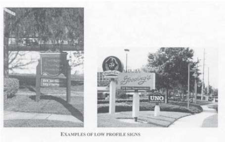 Monument Signs and Low-Profile Pole Signs.