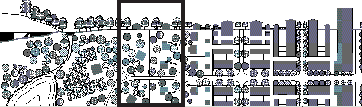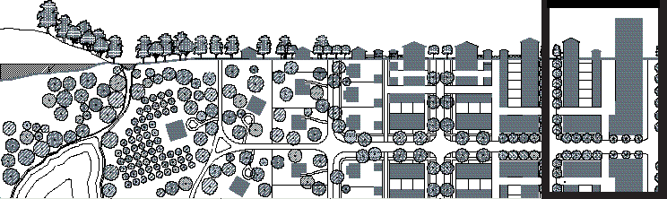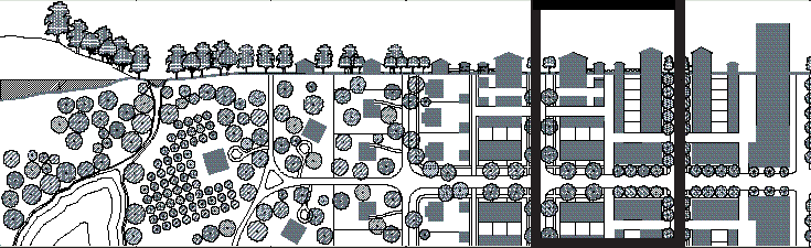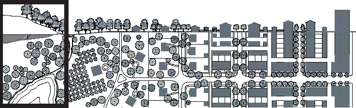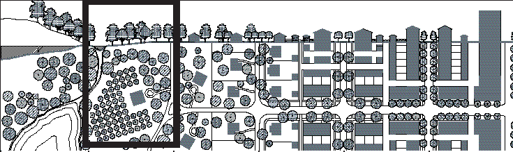 Landscape preservation. The regulating plan designates areas where a buffer of existing trees shall be preserved to maintain the green transition into the SmartCode zoning districts.