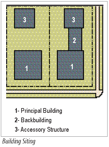 Back building means a single-story structure connecting a principal building to an outbuilding (see Table 14).