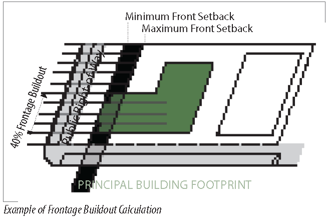 Frontage line means those lot lines that coincide with a public frontage. Façades along frontage lines define the public realm and are therefore more regulated than the elevations that coincide with other lot lines.