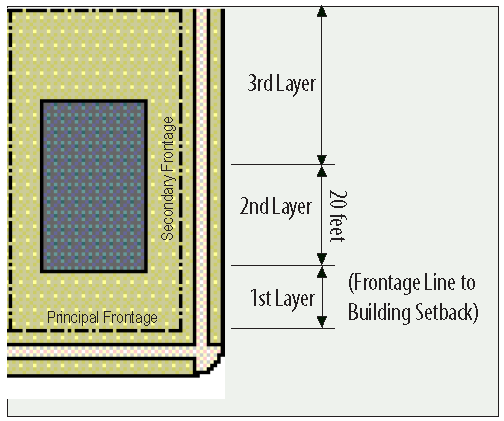 Layer means a range of depth of a lot within which certain elements are permitted.