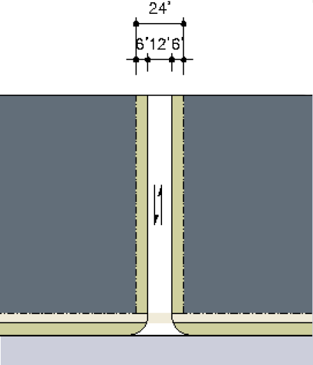 Thoroughfare means a vehicular way incorporating moving lanes and parking lanes within a right-of-way.