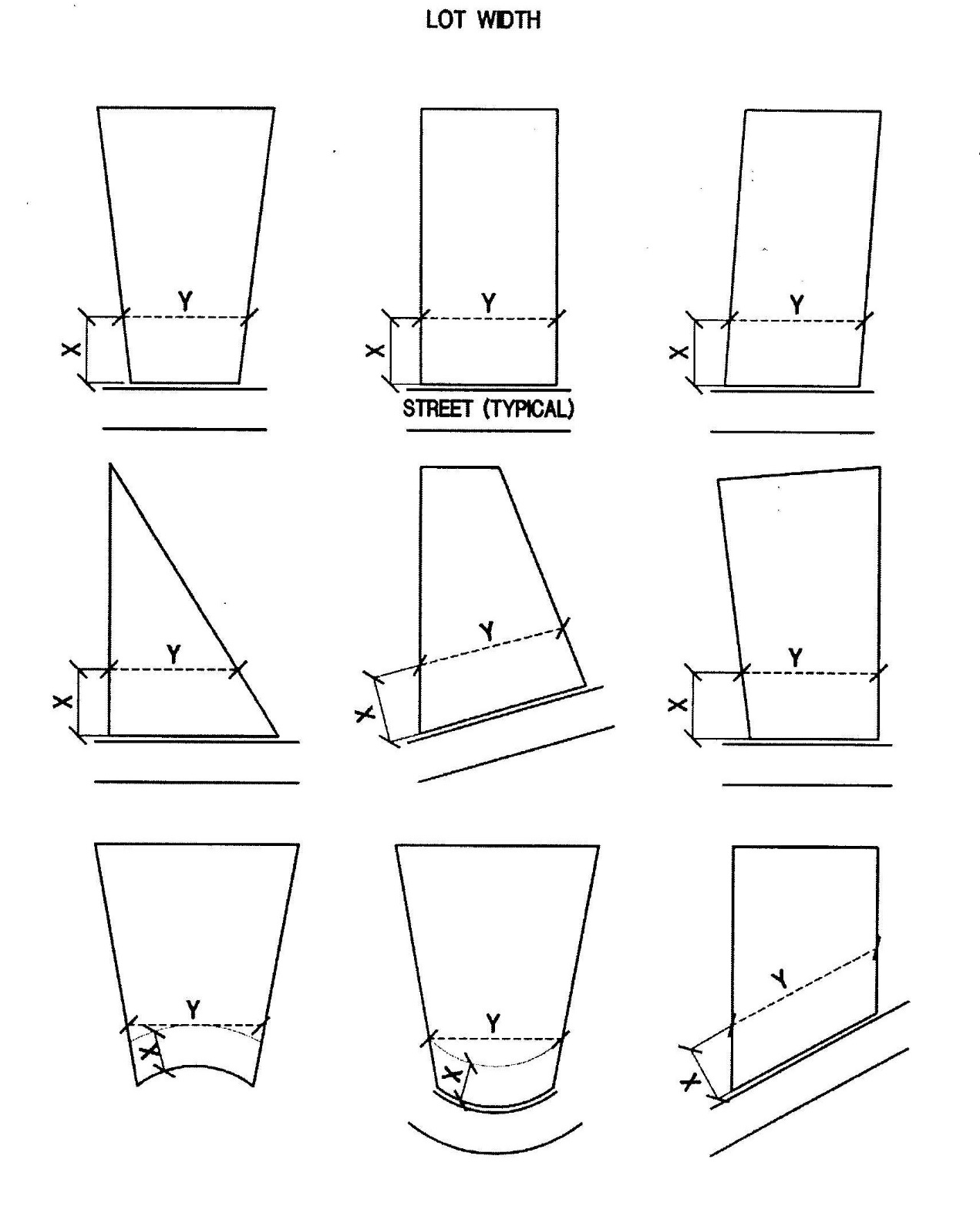 Y = Lot width - Distance between side lot lines measured at the minimum front yard setback line