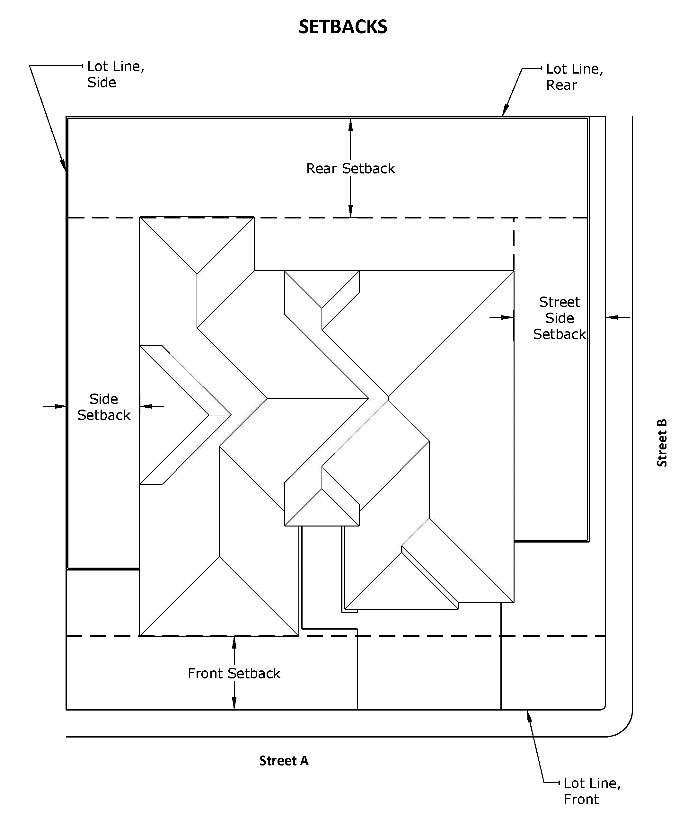 Yard, Side: An open space between the side lot line, and the side planes of the building and extending from the front yard to the rear yard.