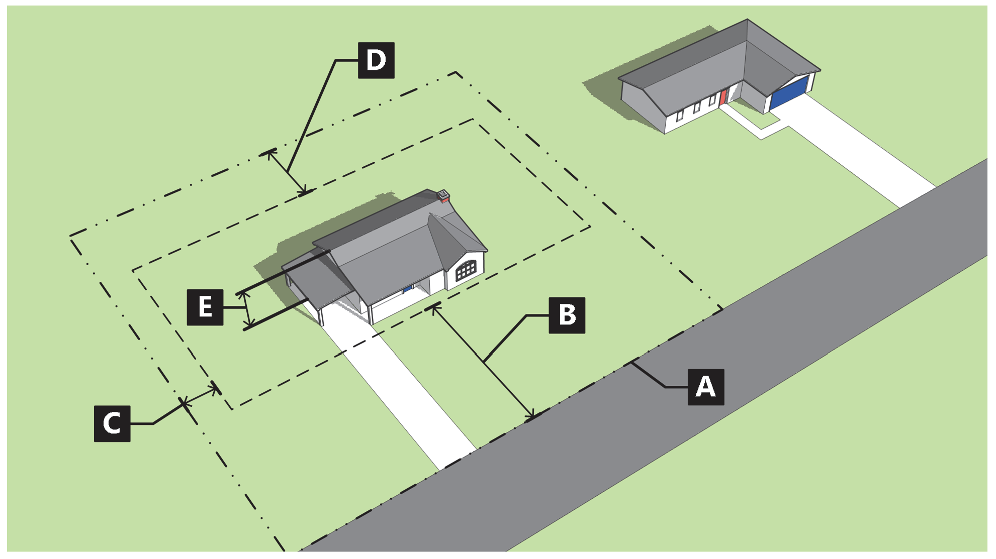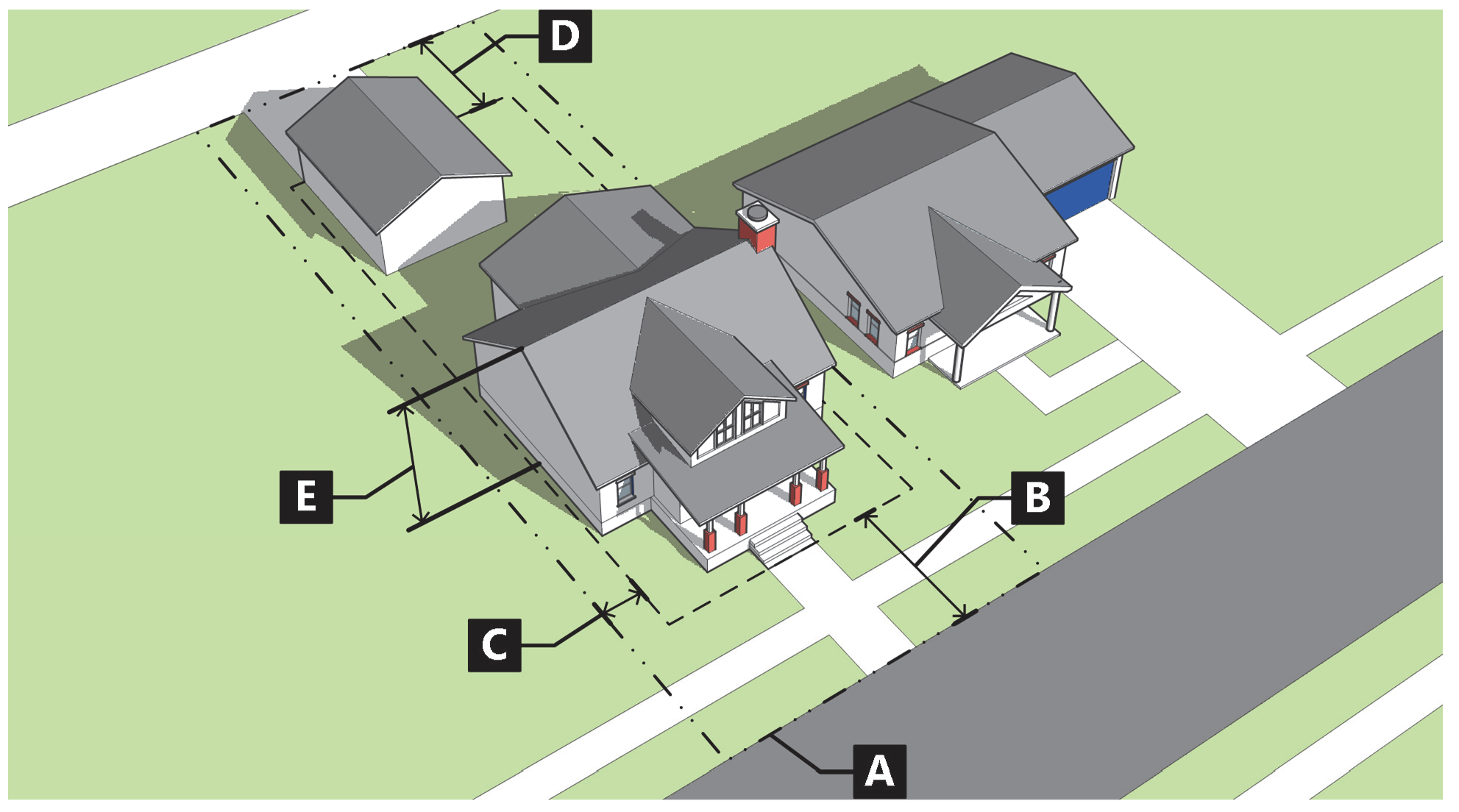 Figure 020-16: Measuring Setbacks on Corner Lots