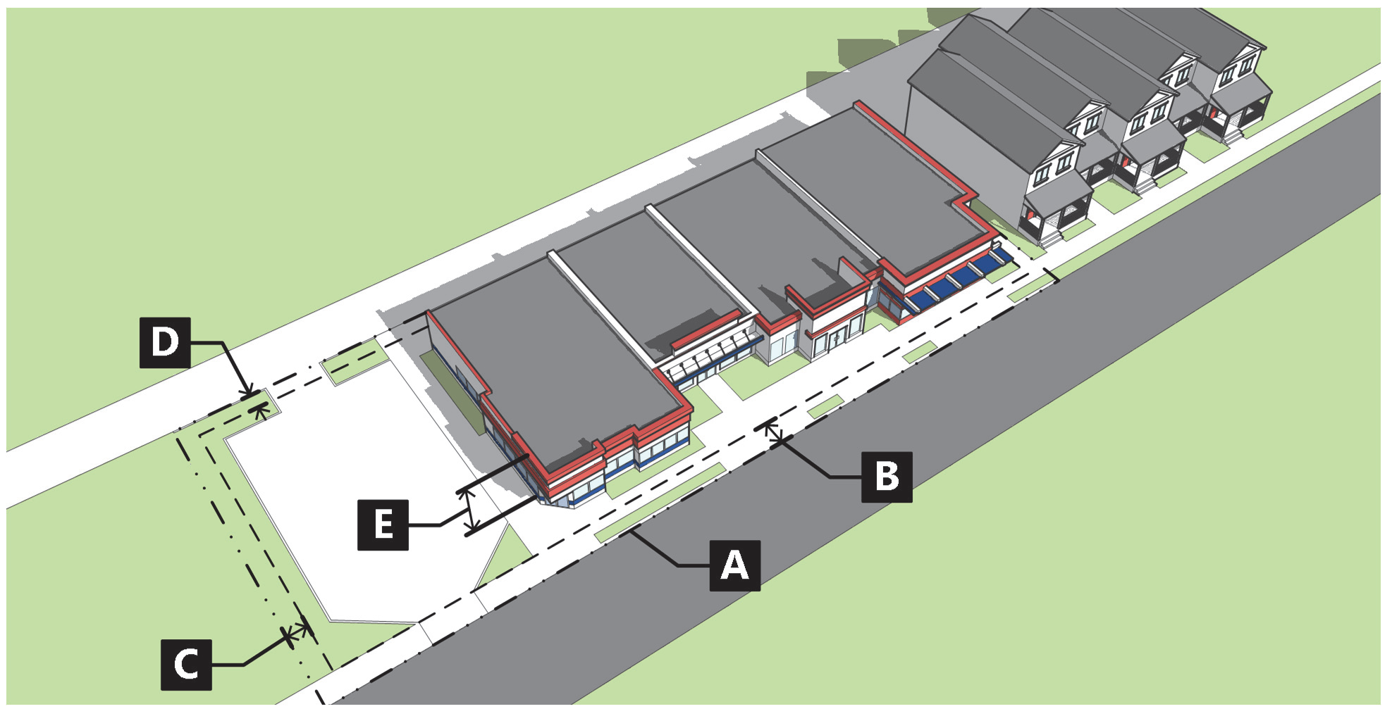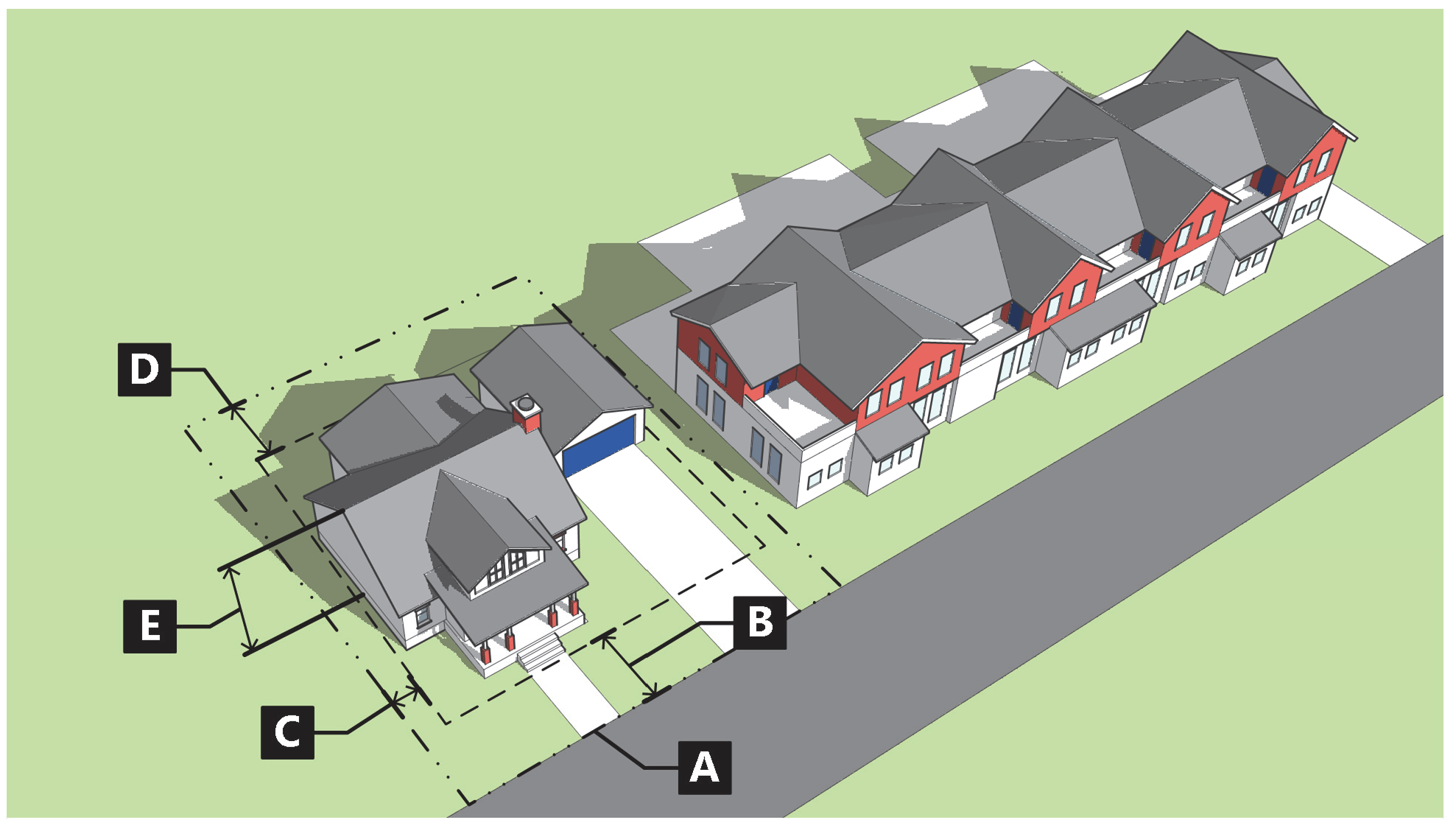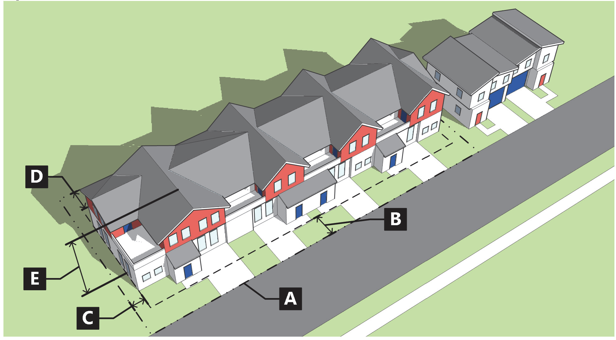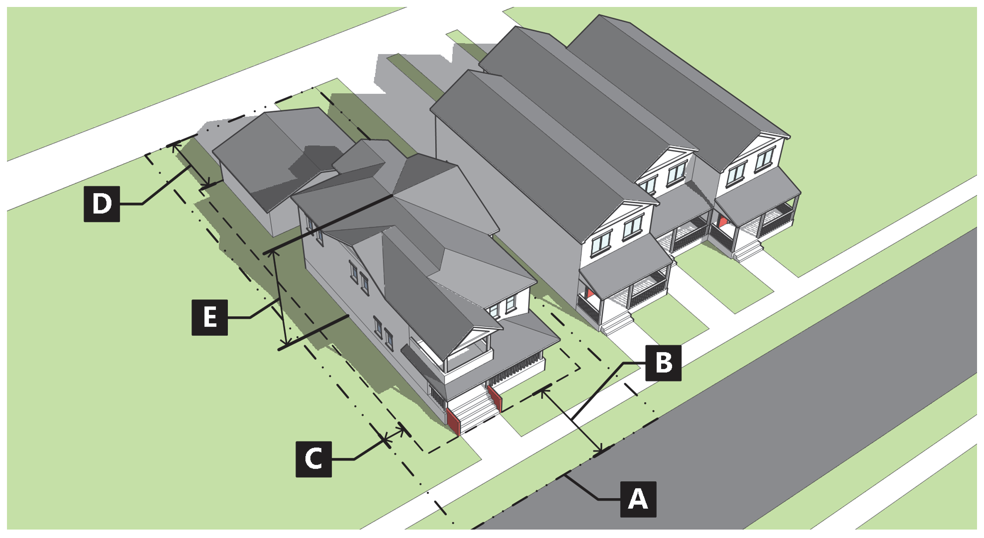 Figure 020-15: Measuring Setbacks for Attached Single-Family
