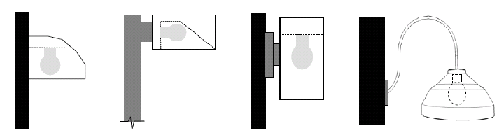 Motion sensors. These mechanisms are the preferred method for controlling nighttime illumination since they turn on lights only when activated by motion and will remain on during the activity or for a set period of time (typically up to 30 minutes) following the last detection of motion. Sensors must be triggered by activity within the owner's property lines and should be used with incandescent, compact fluorescent, or halogen lamps directed downward, or suitably shielded.