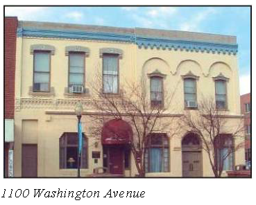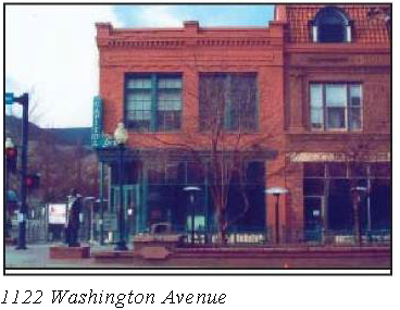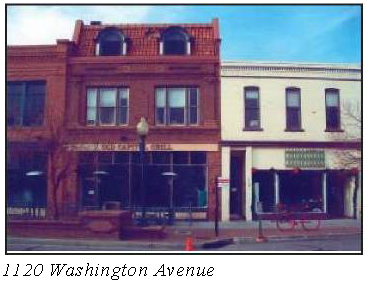 Traditional building widths along Washington Avenue are 25 feet to 50 feet. Where a building must exceed this width, implement changes in design features to suggest the traditional building widths. Buildings in excess of 60 feet should appear as a collection of 25 feet to 50 feet buildings through the use of façade materials and detailing, window designs and trim details.
