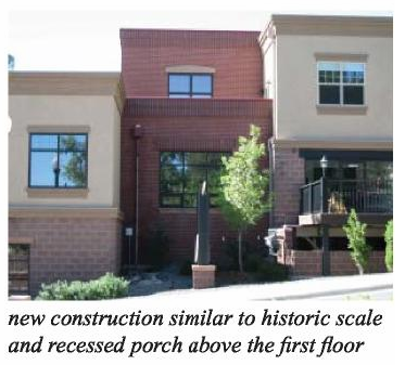Additions to residential structures should be limited on to the side or rear of the original structure and should be smaller in scale than the existing building.