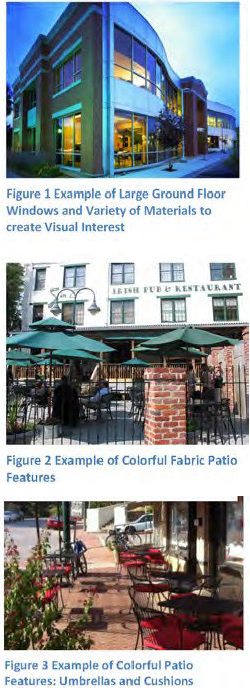 Provide colorful fabric awnings, porticos, patios or other similar architectural features to enhance the pedestrian experience and visual interest (Figures 2 and 3).