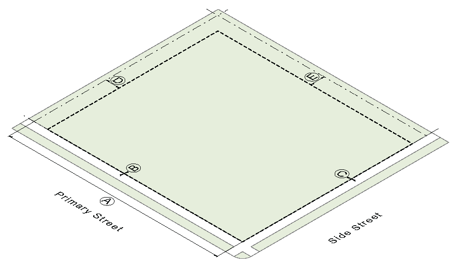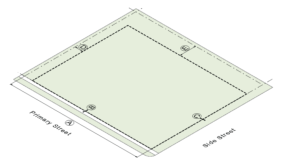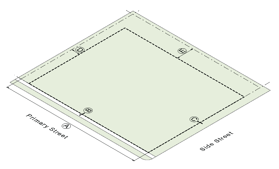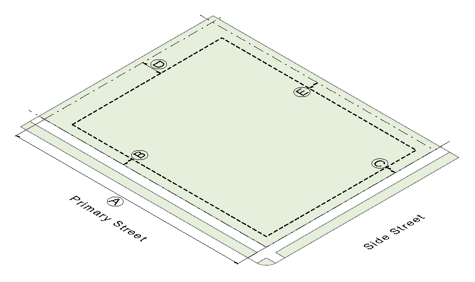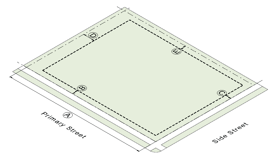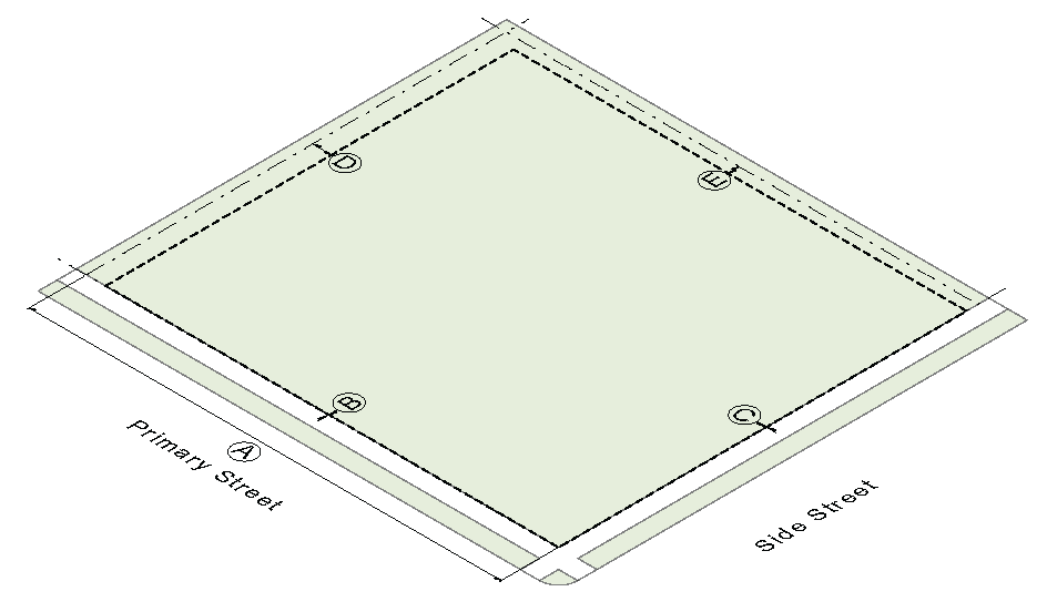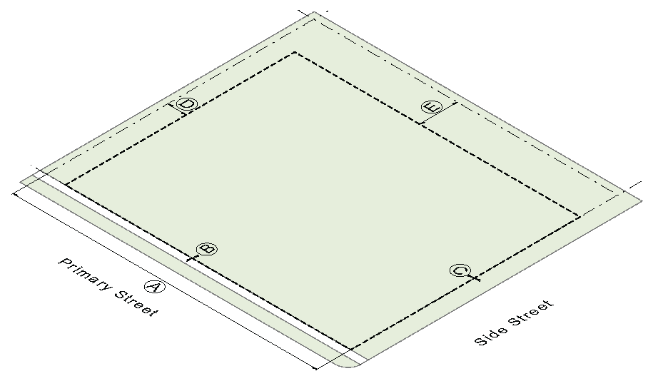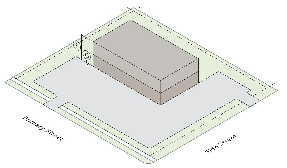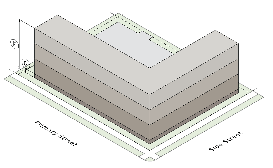 Side street building frontages. Side street-facing façades, other than those facing an alley, shall comply with the transparency requirements of this district or have at least five (5) of the following elements incorporated into the street-facing façade: