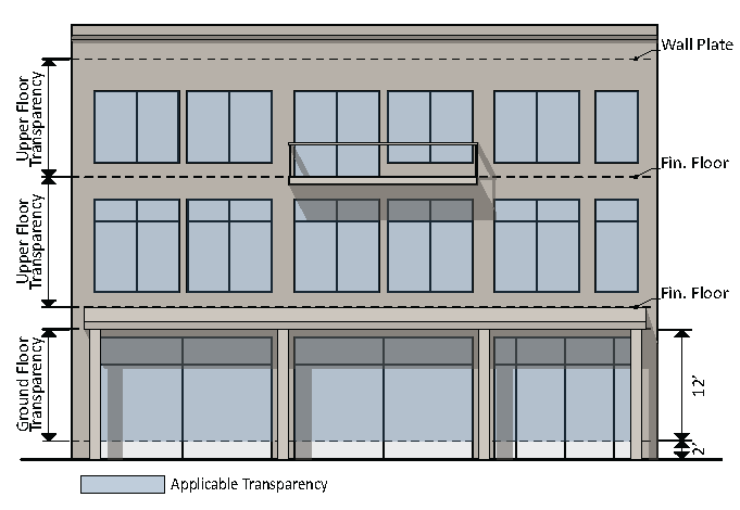 The minimum percentage specifies the minimum linear extent of build-to area that must be occupied with a building façade.
