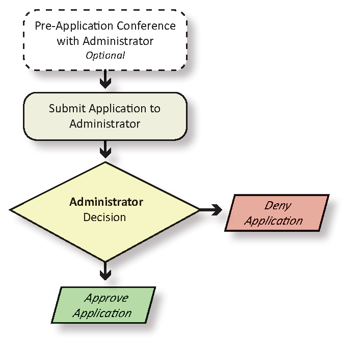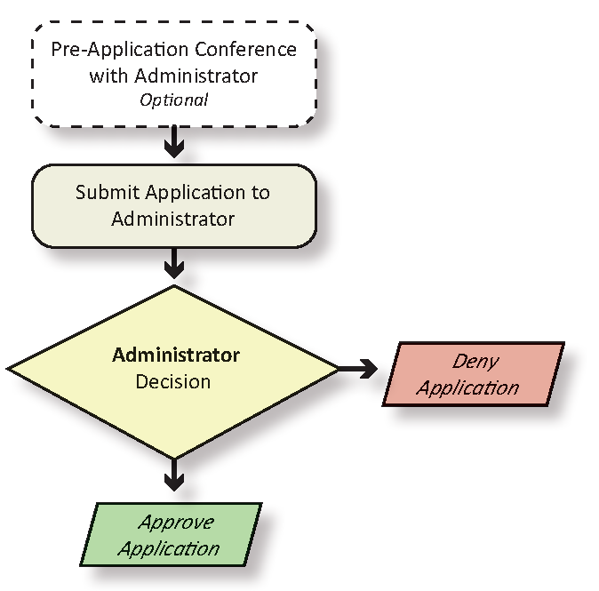 Optional. Before submitting an application for development approval, an applicant may schedule a pre-application conference with the administrator to discuss the procedures, standards and regulations required for approval. A pre-application conference is optional, except for the procedures listed below.