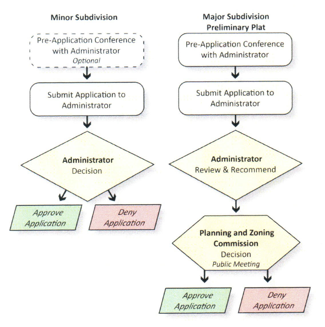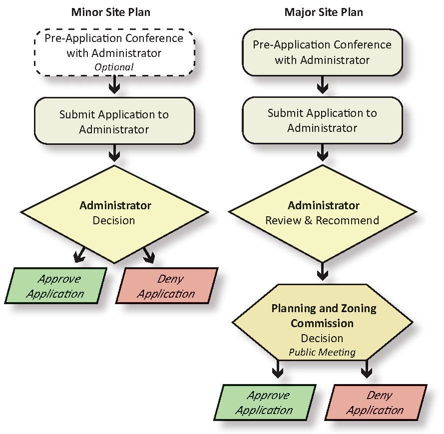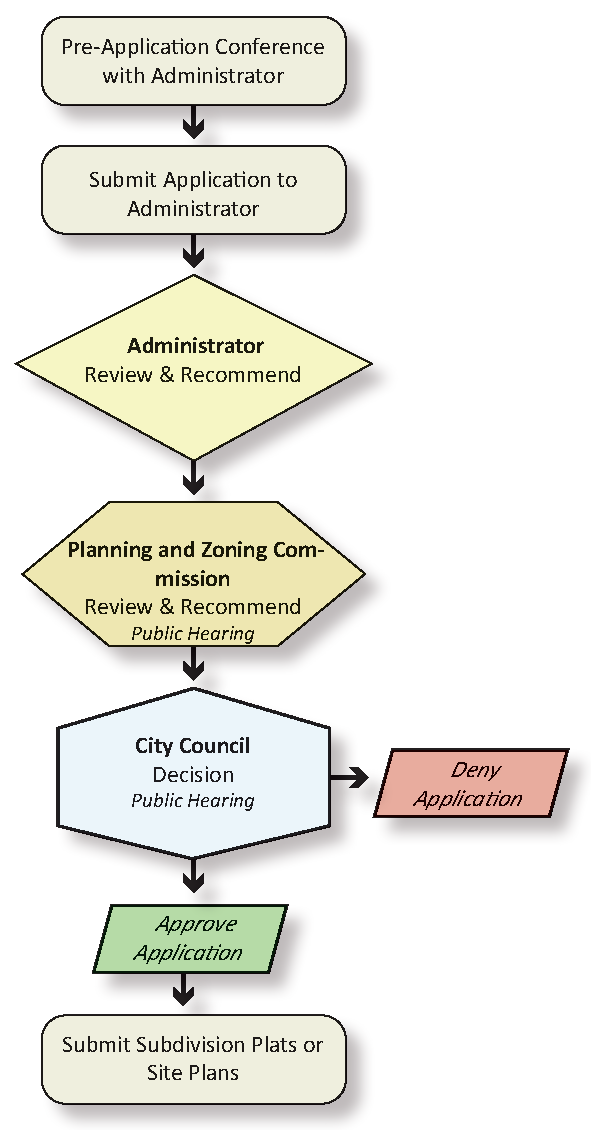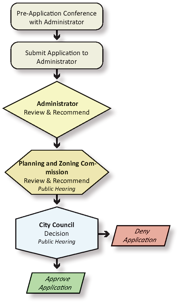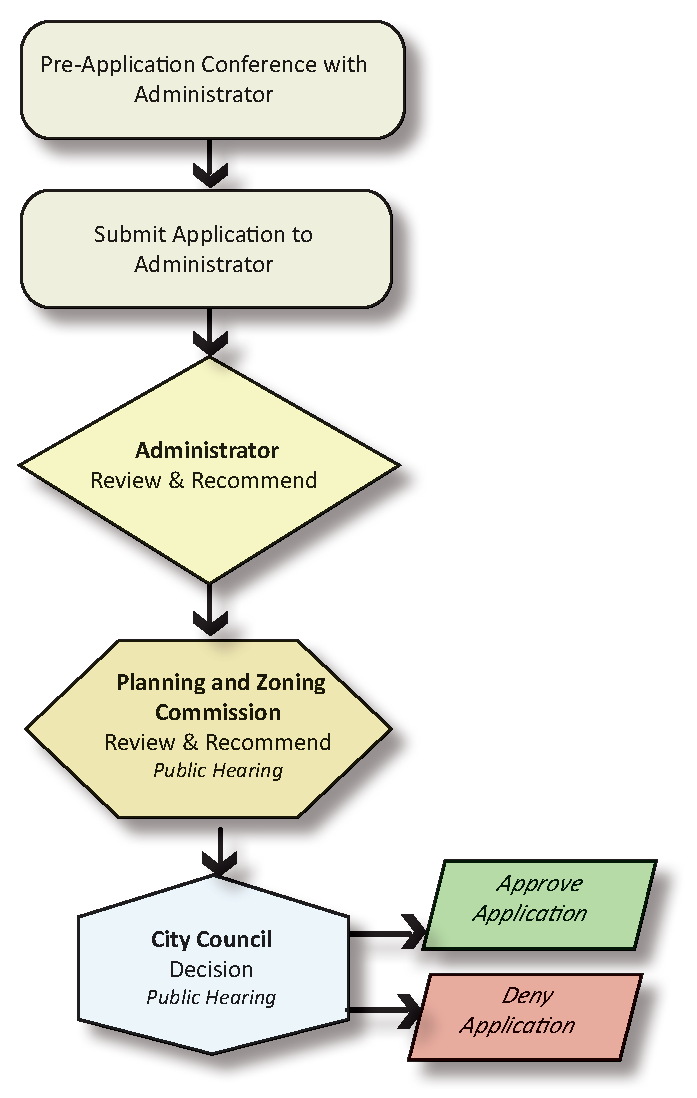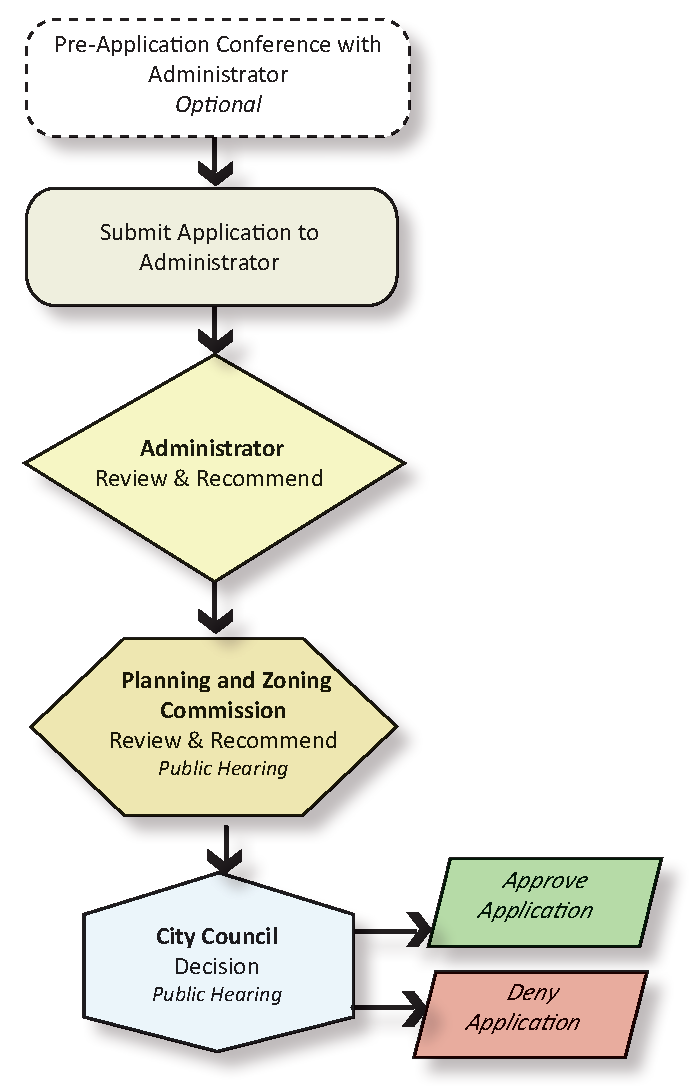 Mandatory. Before submitting an application for the following types of review, an applicant must schedule a pre-application conference with the administrator to discuss the procedures, standards and regulations required for approval in accordance with this [section].