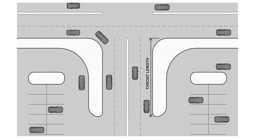 The length of driveways or "throat length" (see Figure 2) must be designed in accordance with the anticipated storage length for entering and exiting vehicles to prevent vehicles from backing into the flow of traffic on the public street or causing unsafe conflicts with on-site circulation. Variation from these can be permitted for good cause, upon approval of the POD administrator.