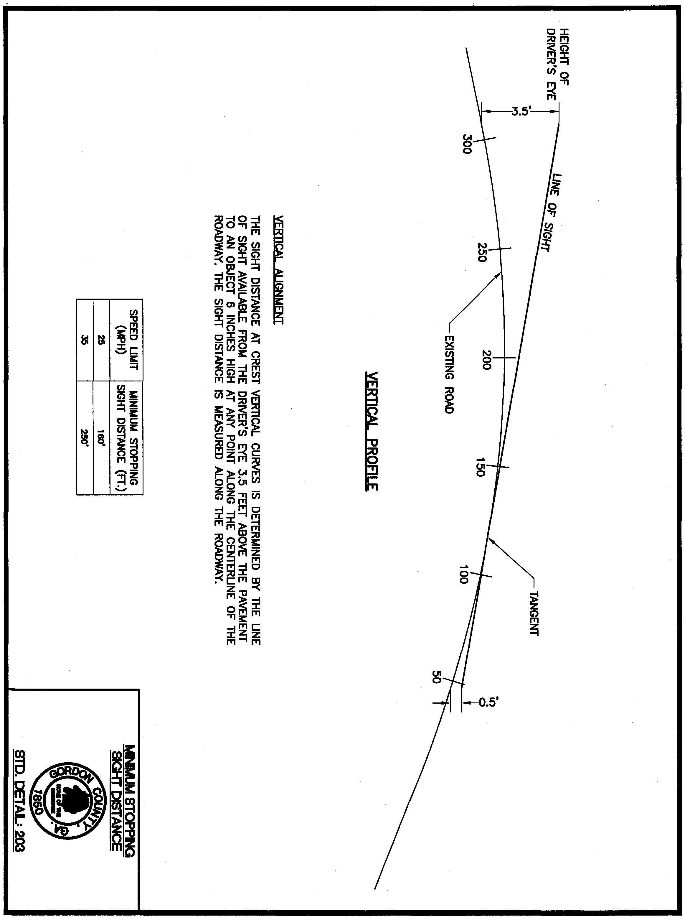 Standard Detail 203: Minimum Stopping Sight Distance