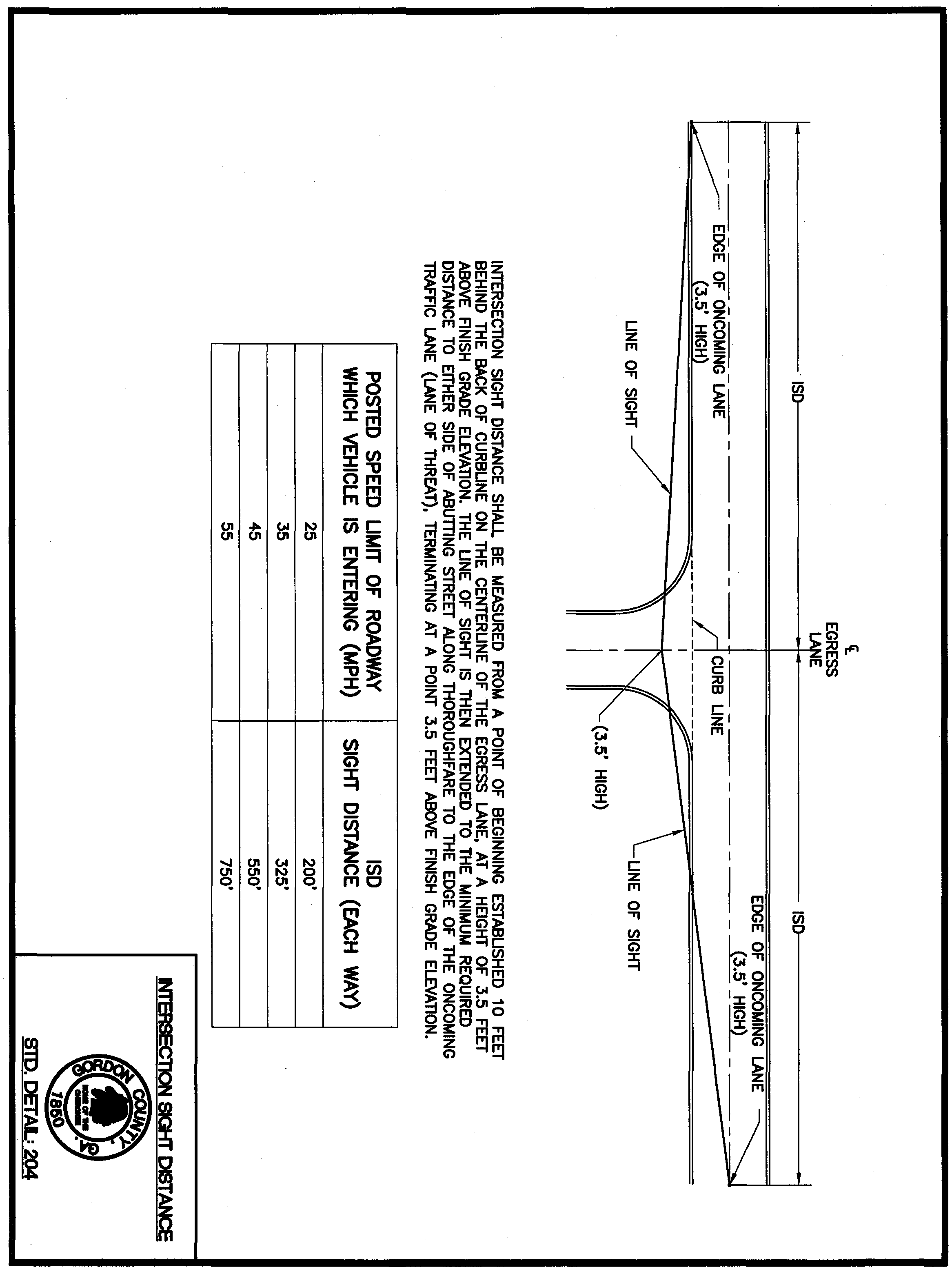 Standard Detail 204: Intersection Sight Distance