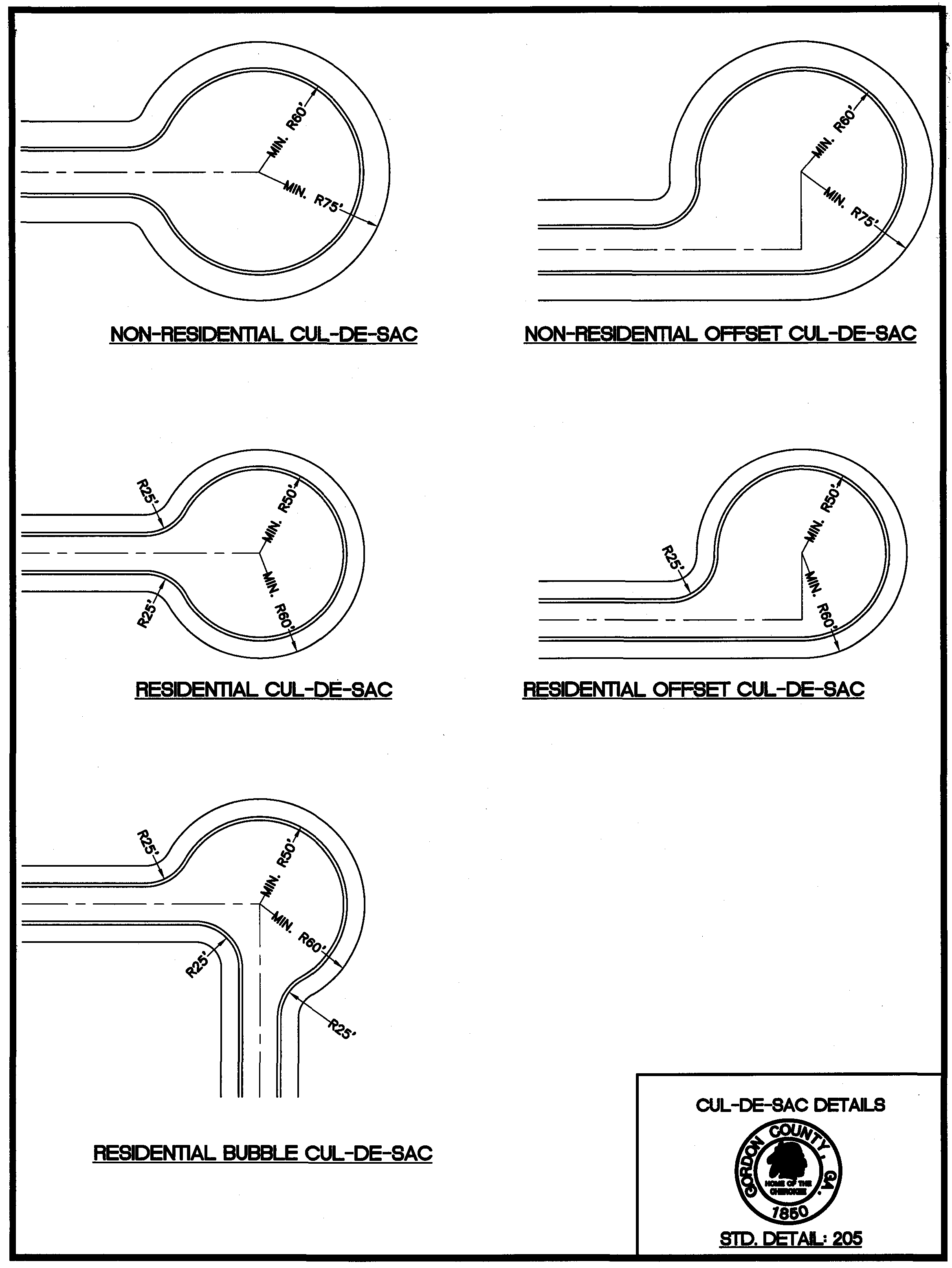Standard Detail 205: Cul-de-Sac Details