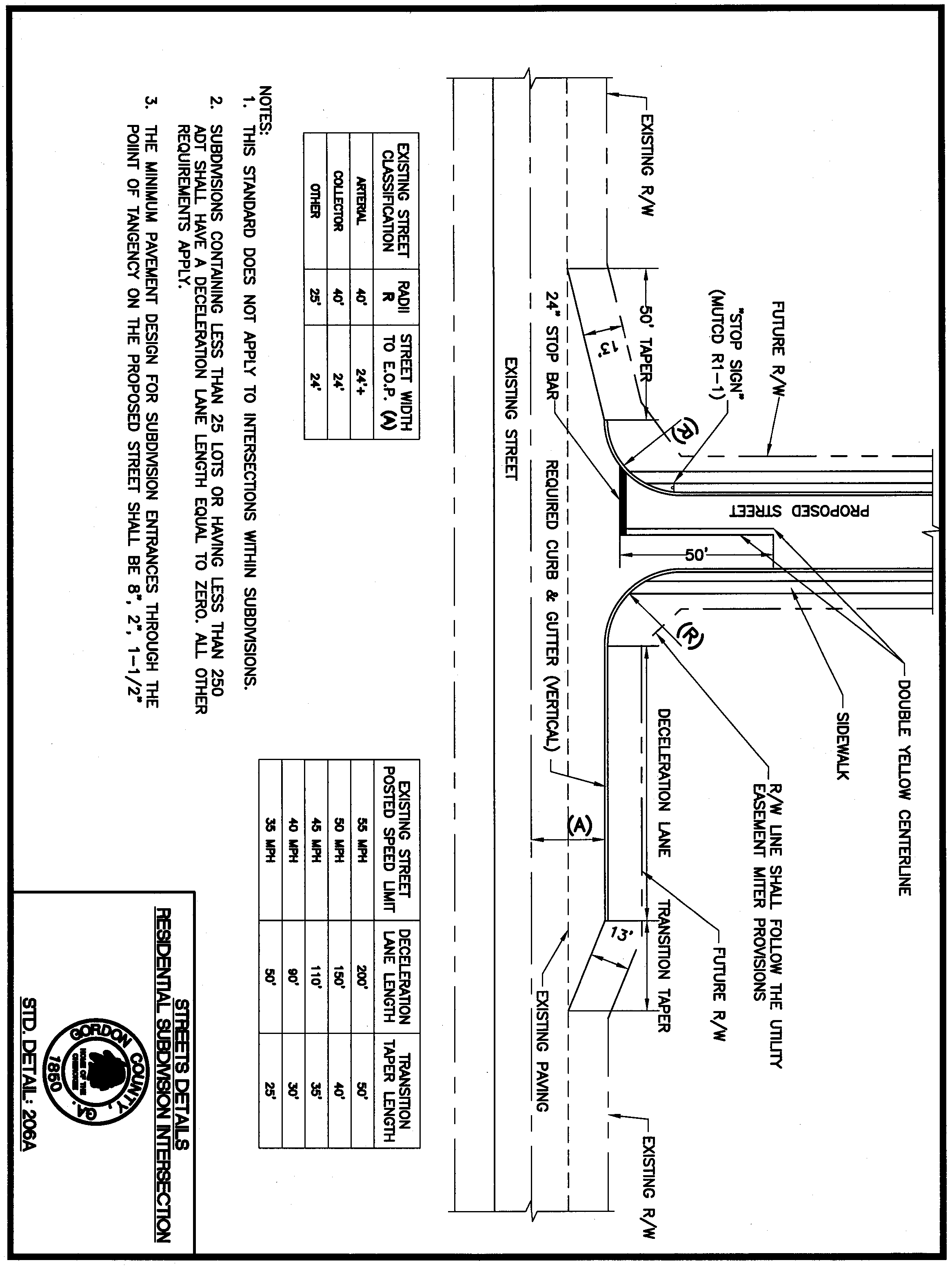 Standard Detail 206A: Streets Details, Residential Subdivision Intersection