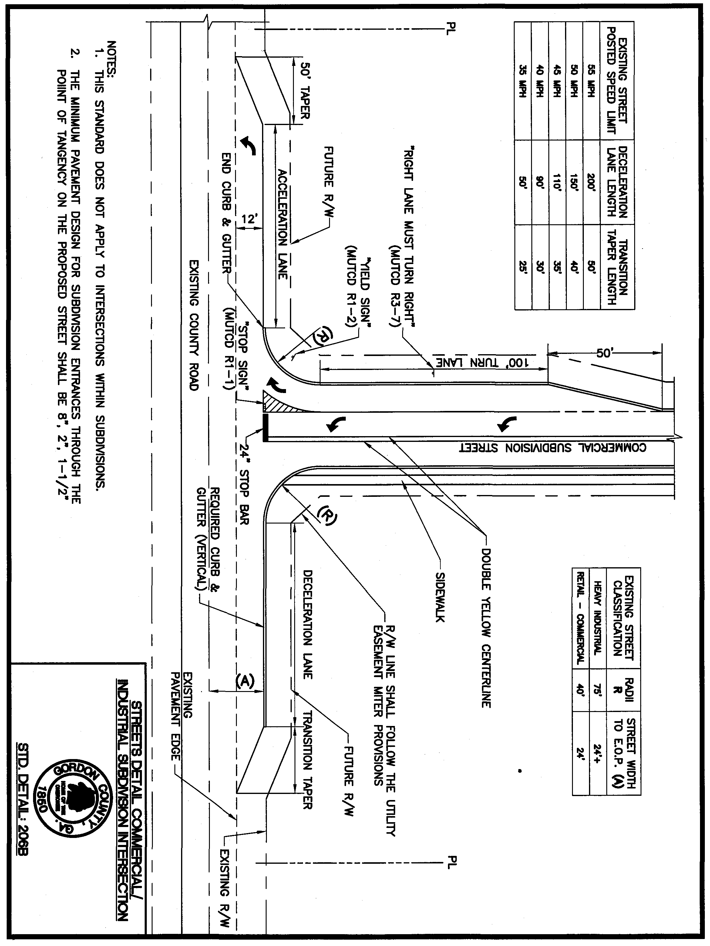 Standard Detail 206B: Streets Detail, Commercial/Industrial Subdivision Intersection