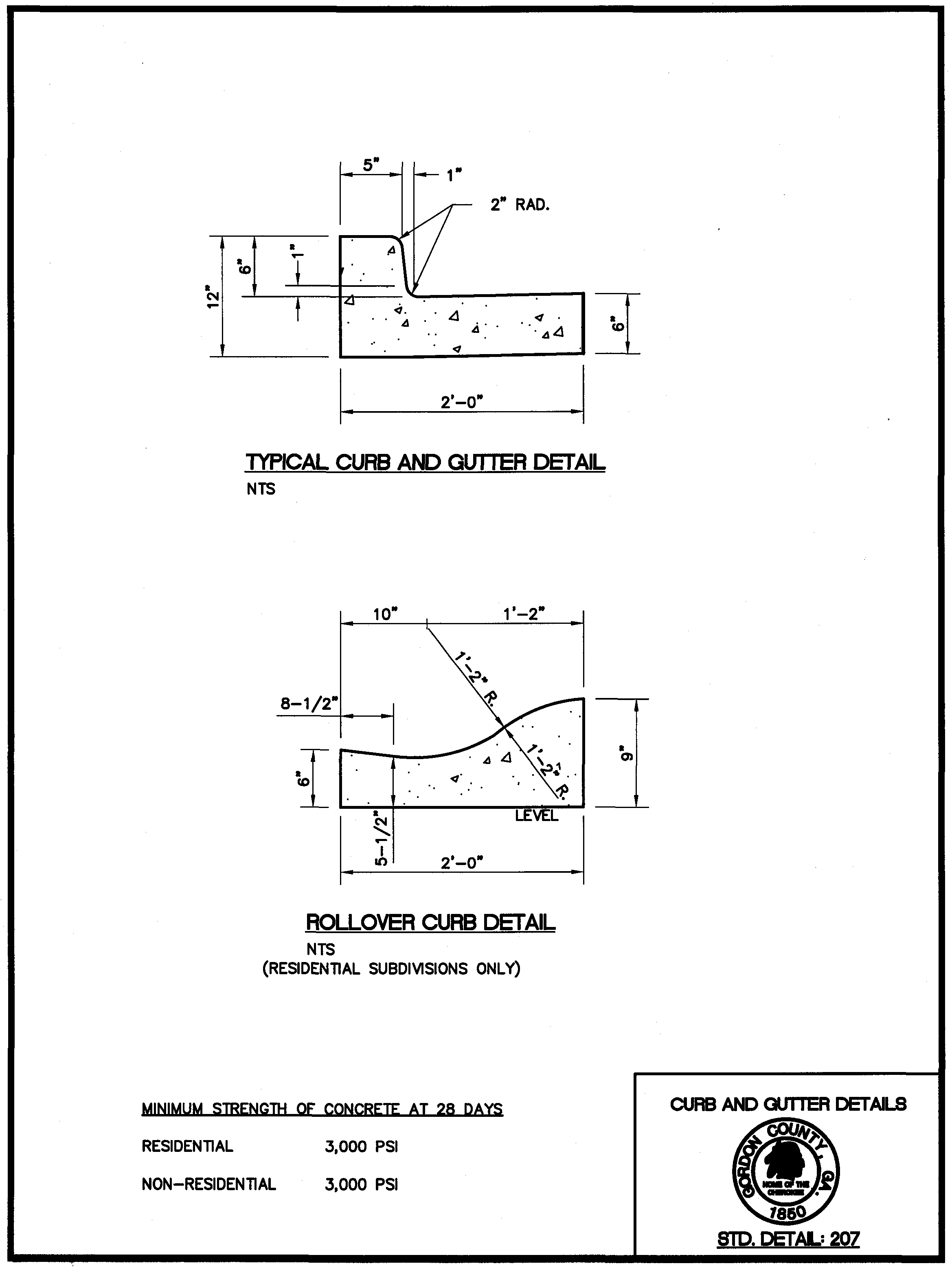 Standard Detail 207: Curb and Gutter Details