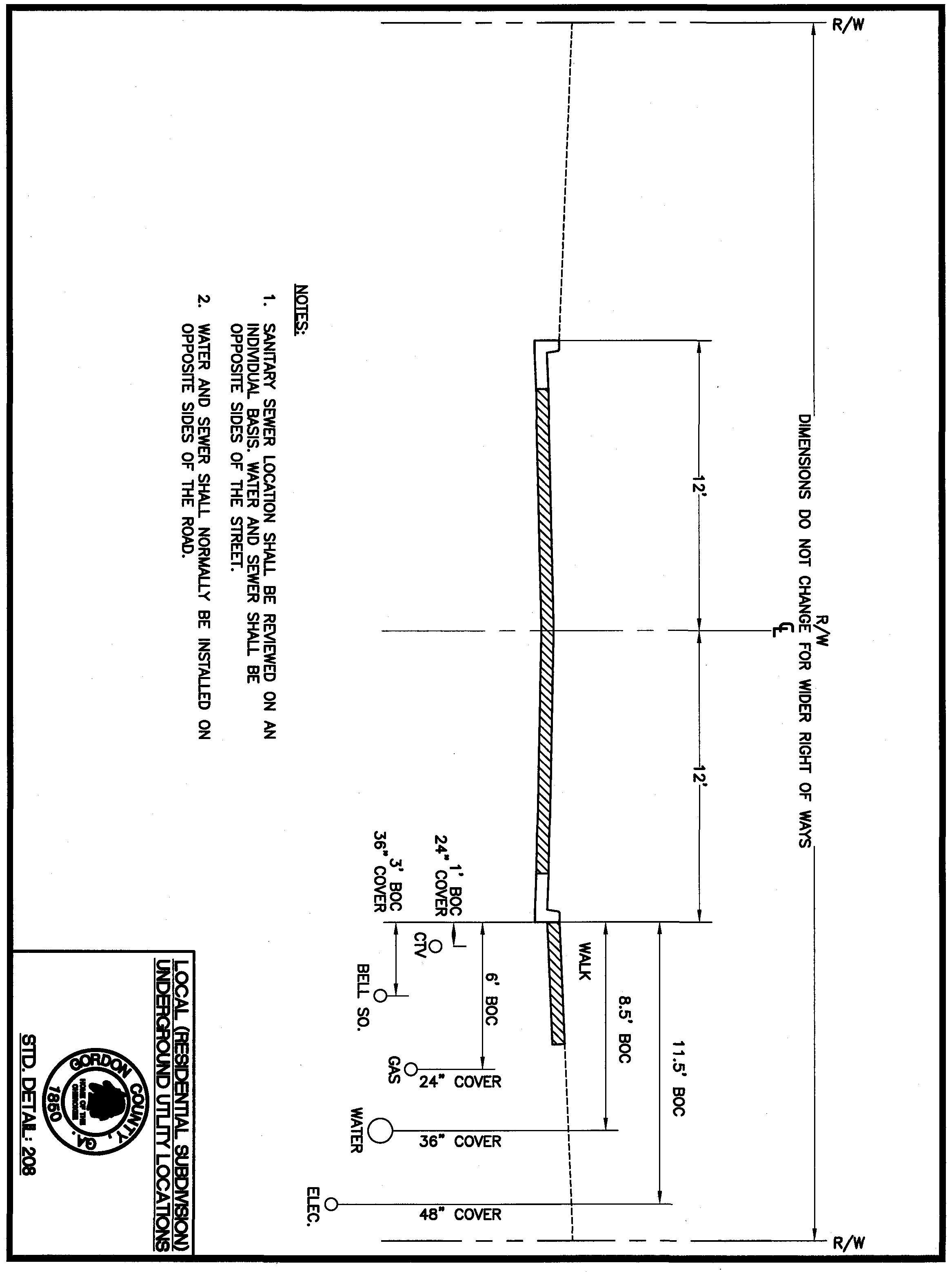 Standard Detail 208: Local (Residential Subdivision) Underground Utility Locations