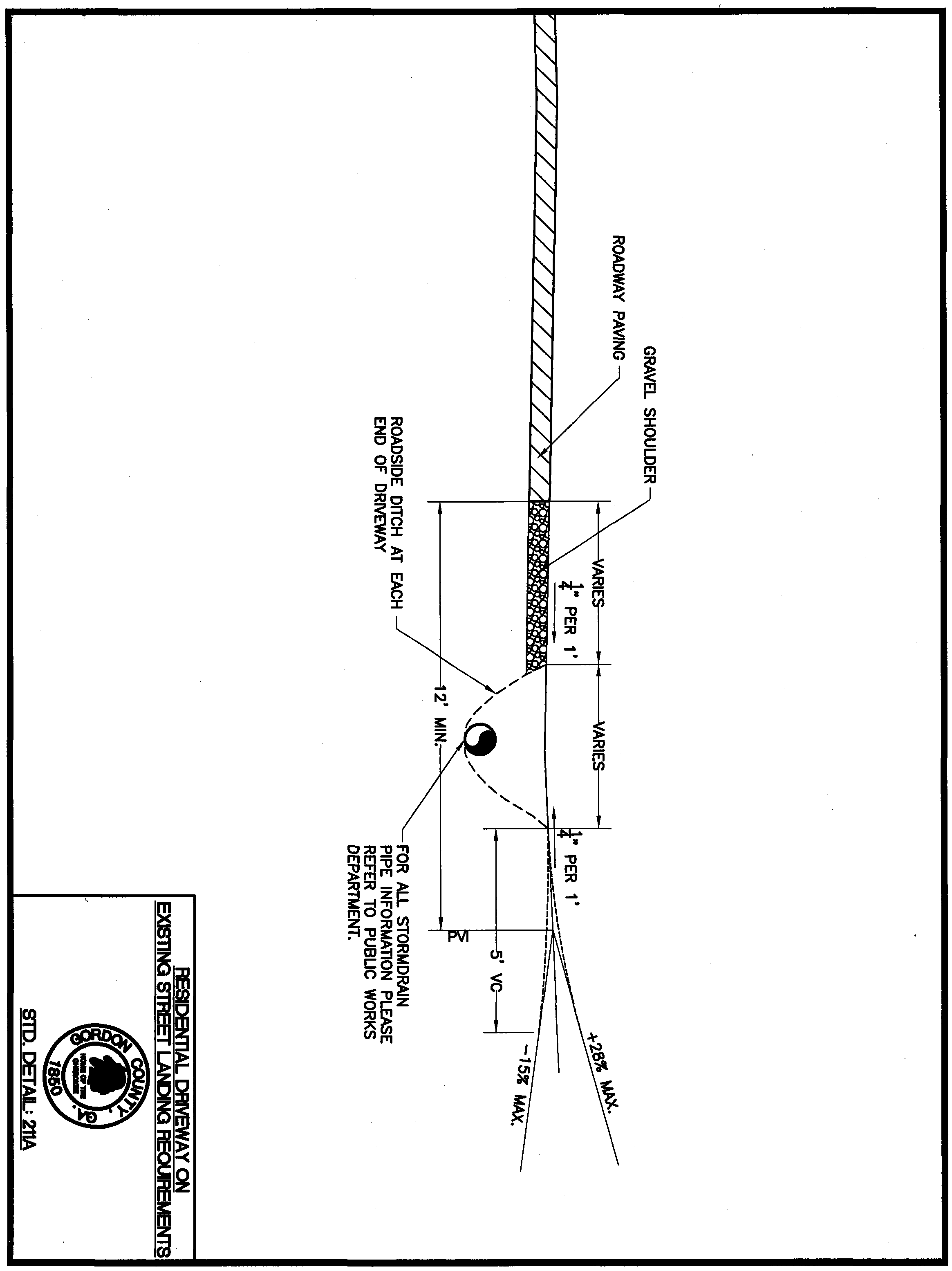 Standard Detail 211A: Residential Driveway on Existing Street Landing Requirements