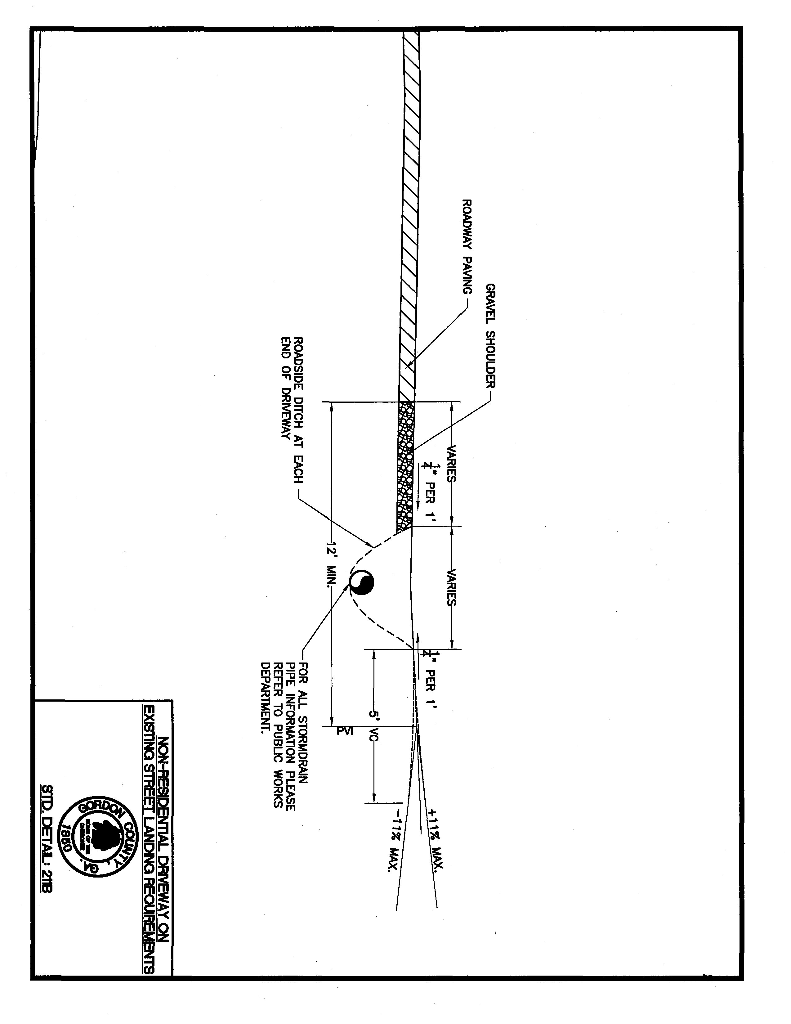 Standard Detail 211B: Nonresidential Driveway on Existing Street Landing Requirements