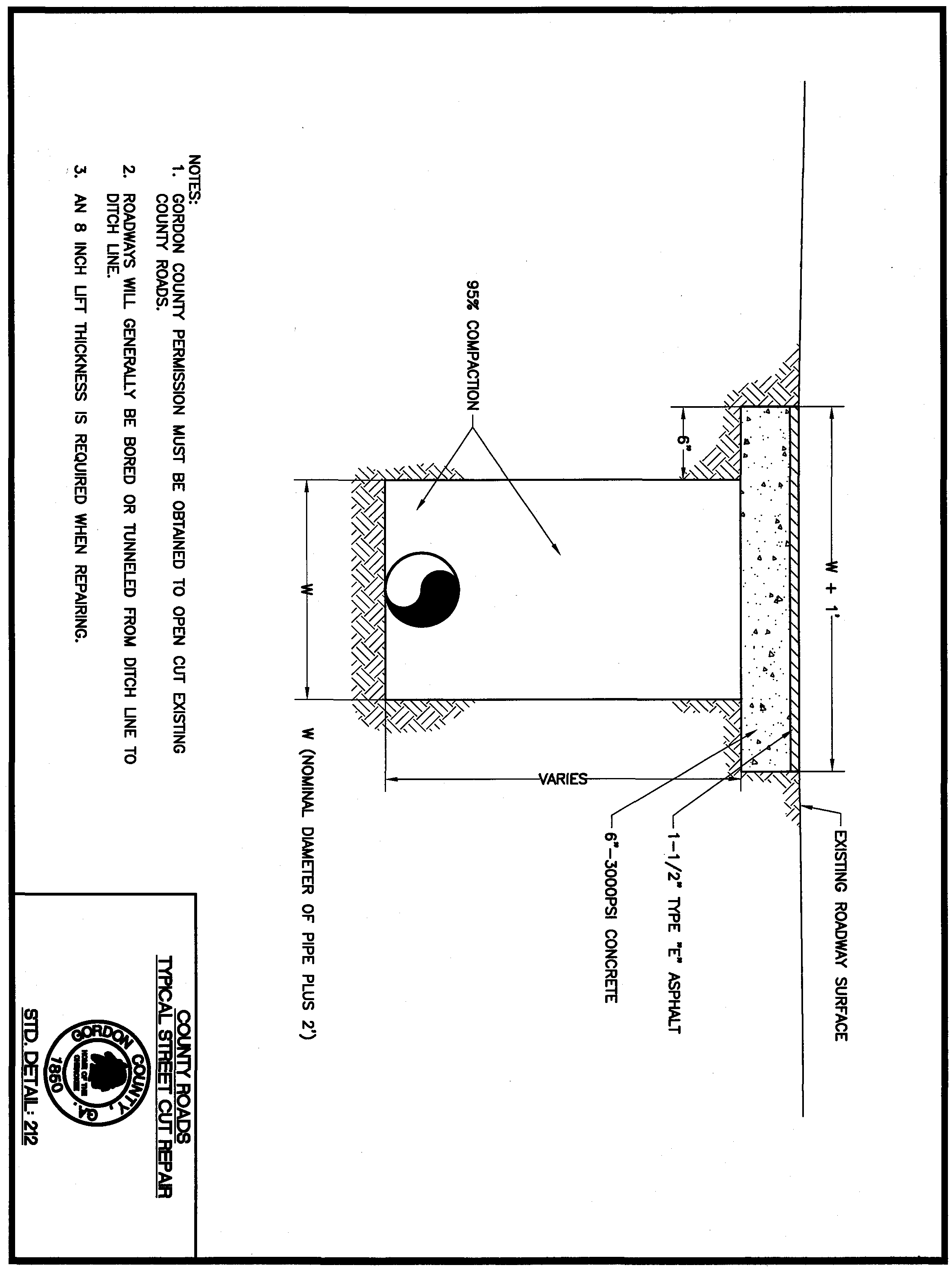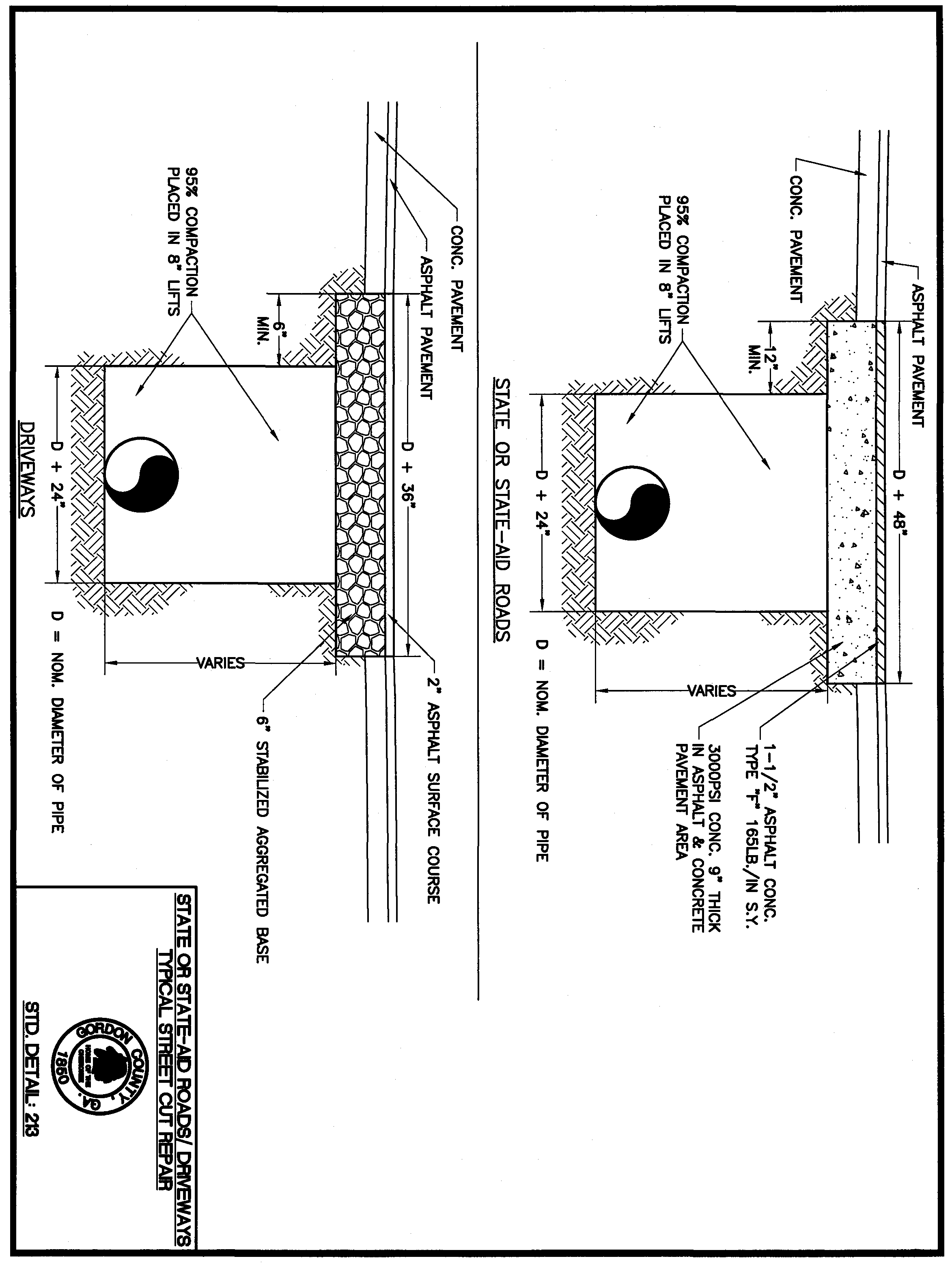 Standard Detail 212: County Roads Typical Street Cut Repair