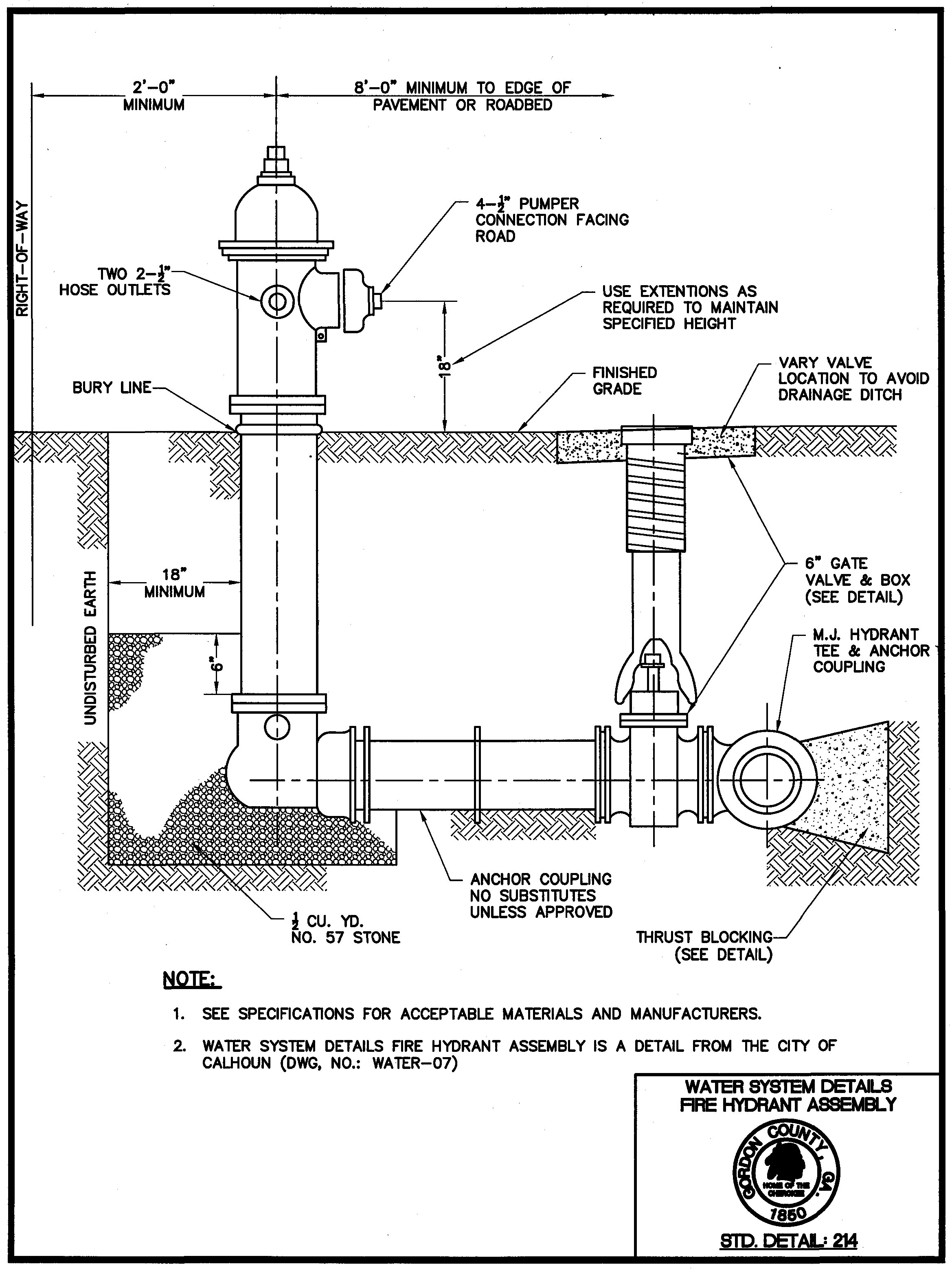 Standard Detail 214: Water System Details, Fire Hydrant Assembly