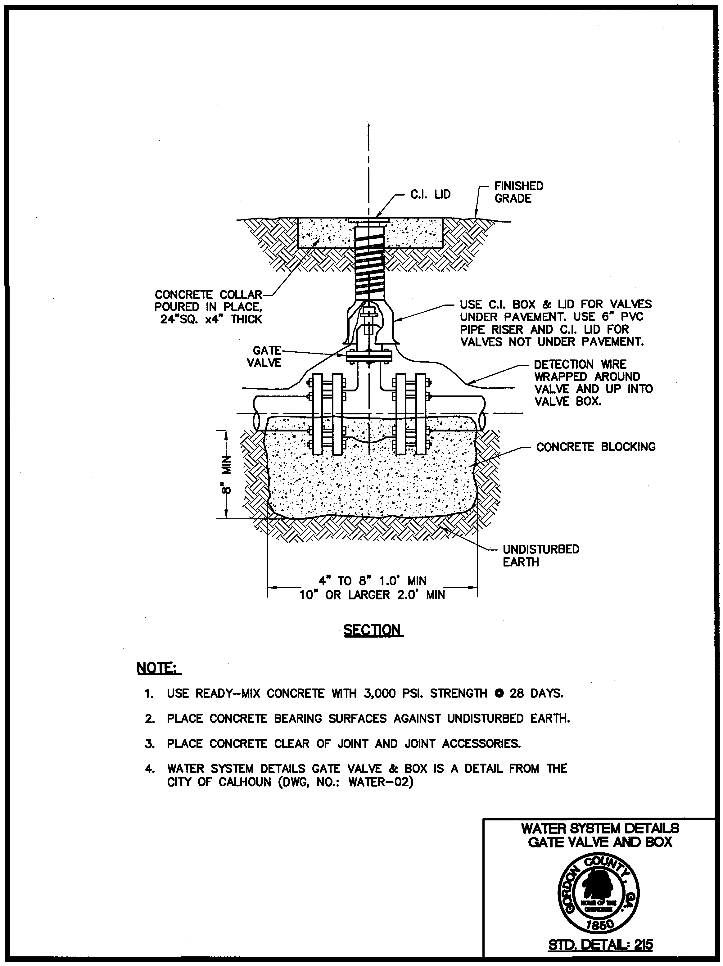 Standard Detail 215: Water System Details, Gate Valve and Box