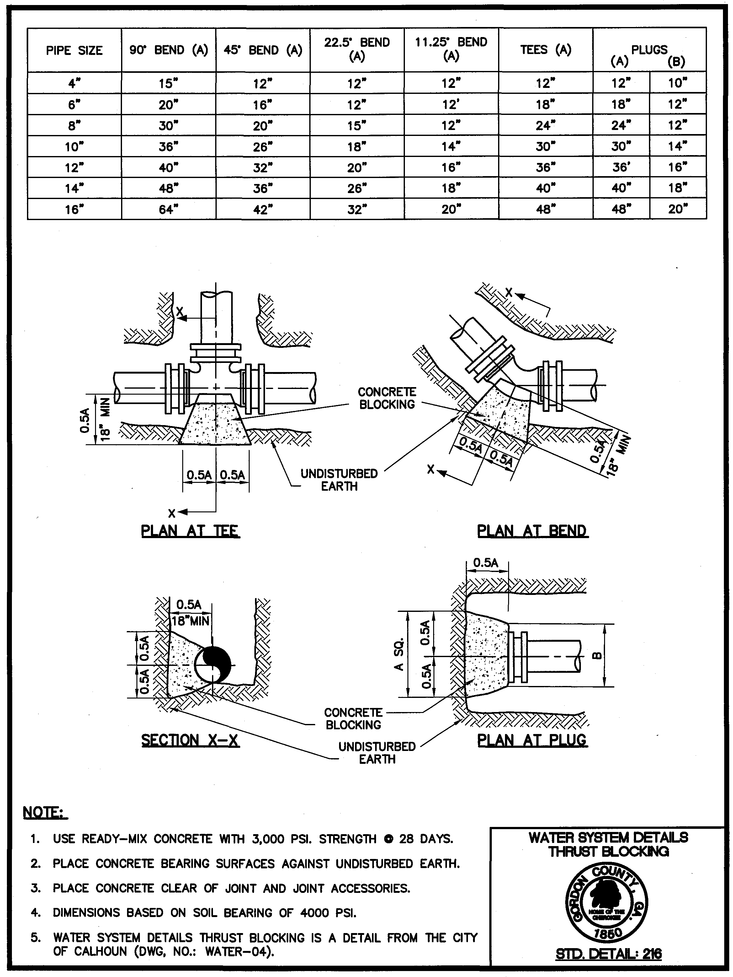 Standard Detail 216: Water System Details, Thrust Blocking