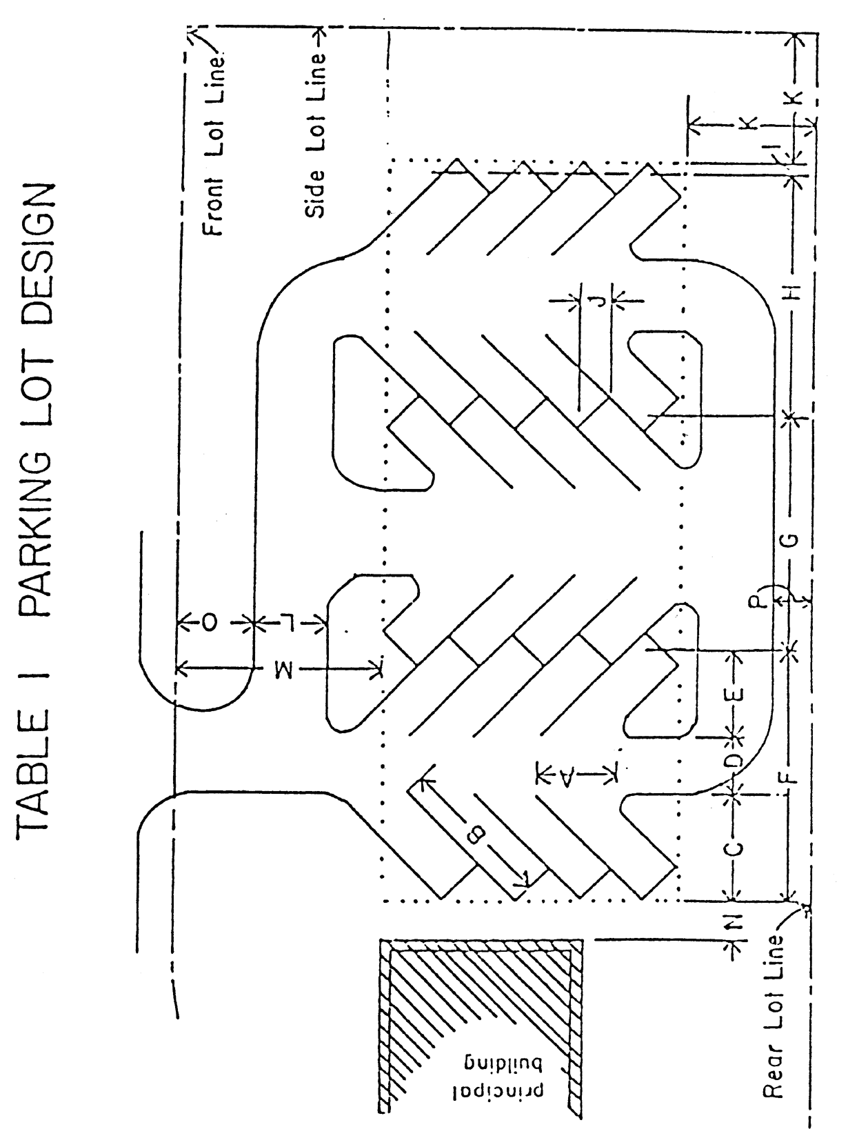 Existing parking spaces with dimensions labeled.