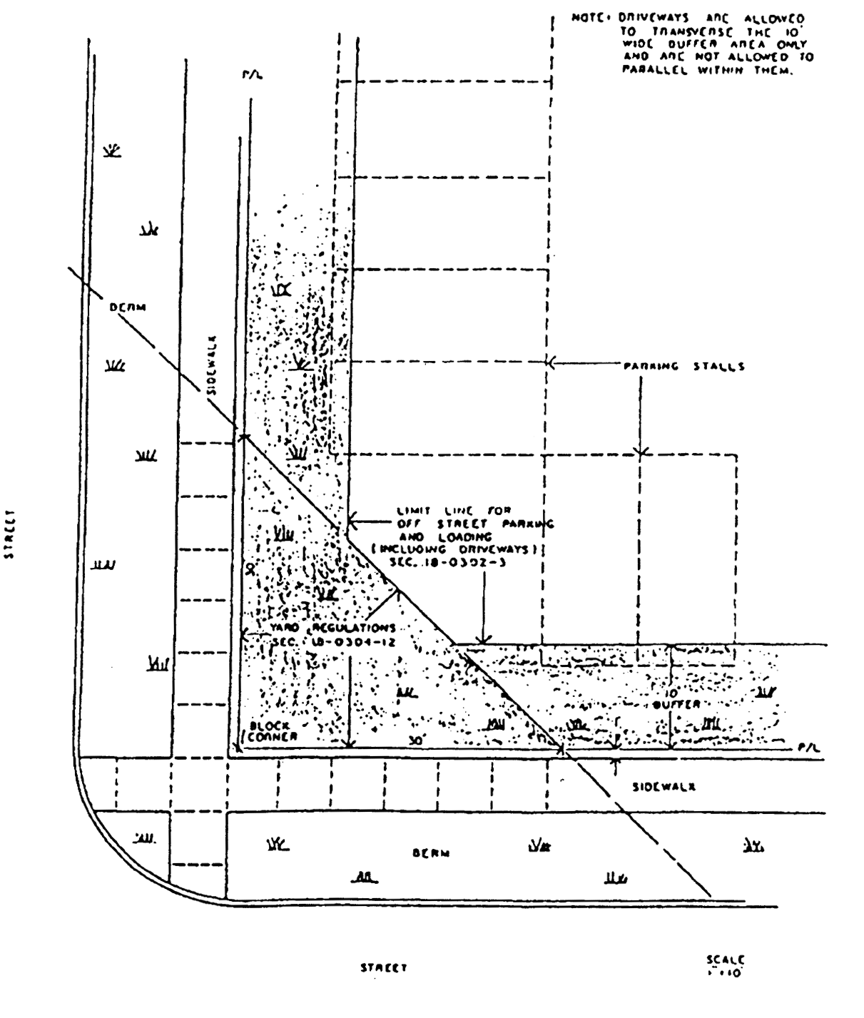 Existing curb cuts and/or driveways with dimensions labeled.